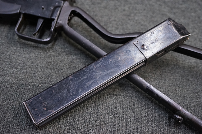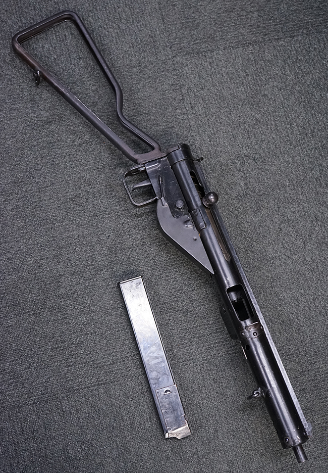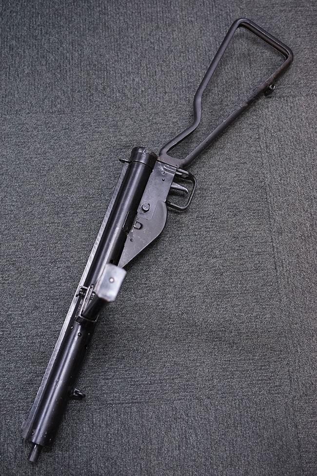 第二次世界大戦中に英軍が使用した、9mmパラベラム弾を使用する極めて生産性に優れた短機関銃です。