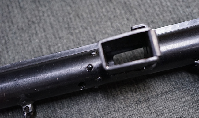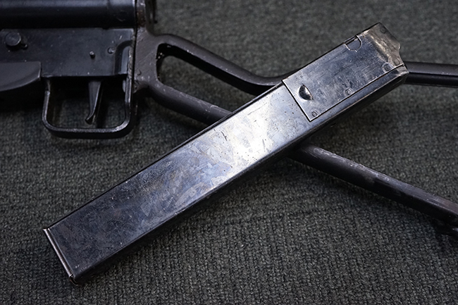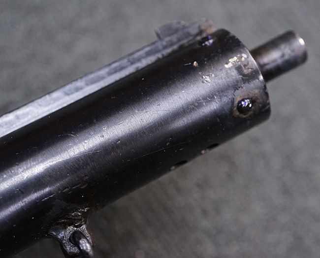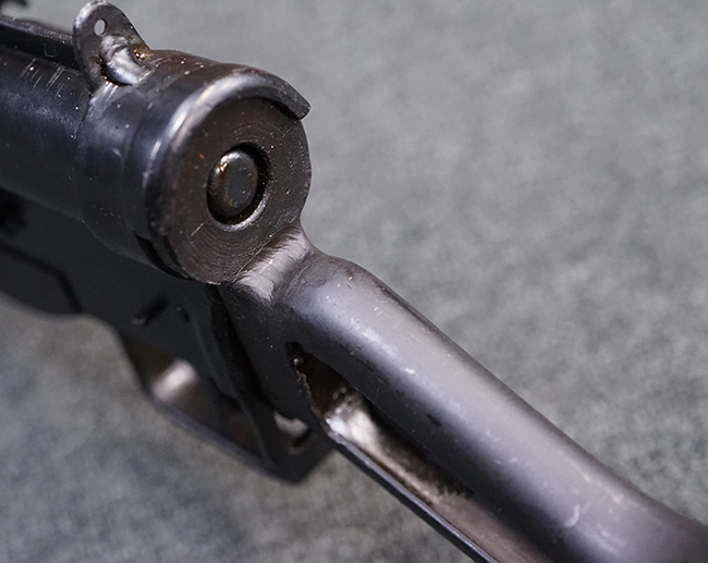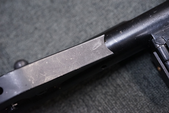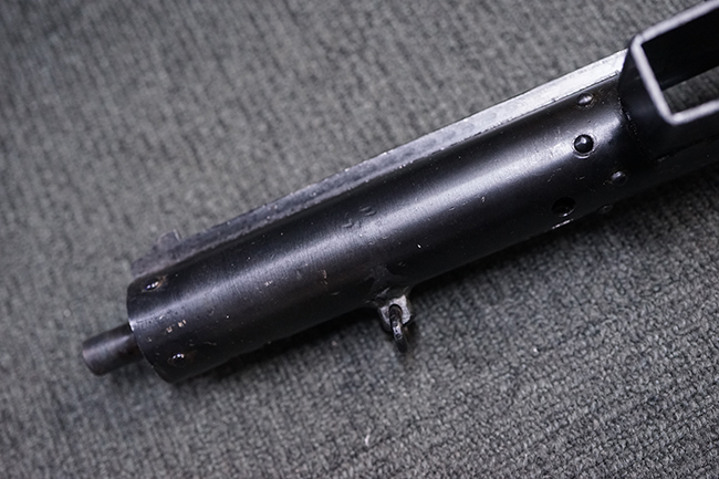 本品はブルーイングに一部艶消しのような表面処理が施されています。 全体に小傷が散見されますが、表面処理自体は鮮やかに残っており、概ね良い状態が保たれています。 ストックの取り付けについても、がたつきなくしっかりと固定されます。 マガジンの着脱についてはやや渋く着脱に力必要ですが、機能的には問題なく行う事が可能です。 マガジンは取り付けはがたなくしっかりとしています。 付属のマガジンについては、本体に比べて表面錆の跡が目立ちますが、現状劣化が進行している様子は無く大きな凹みや変形等は見られません。 尚、マガジン・スプリングは入っています。
