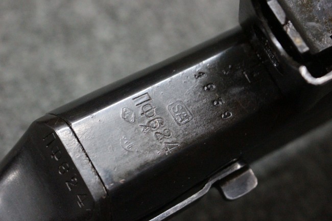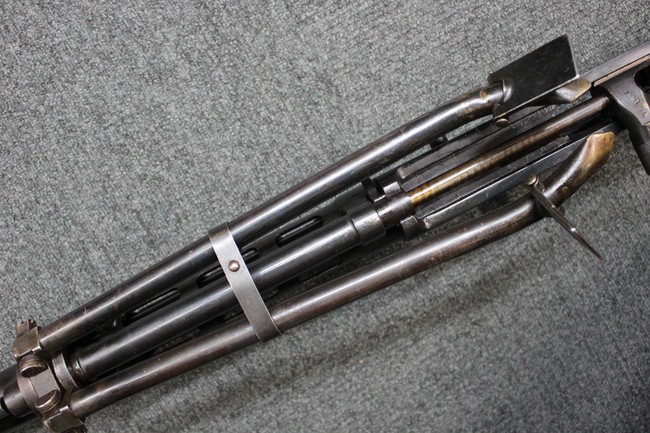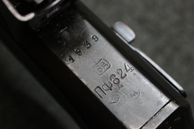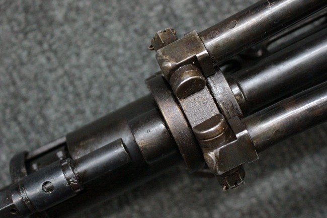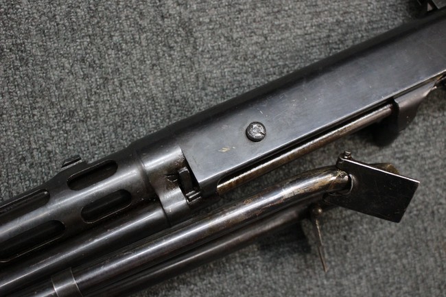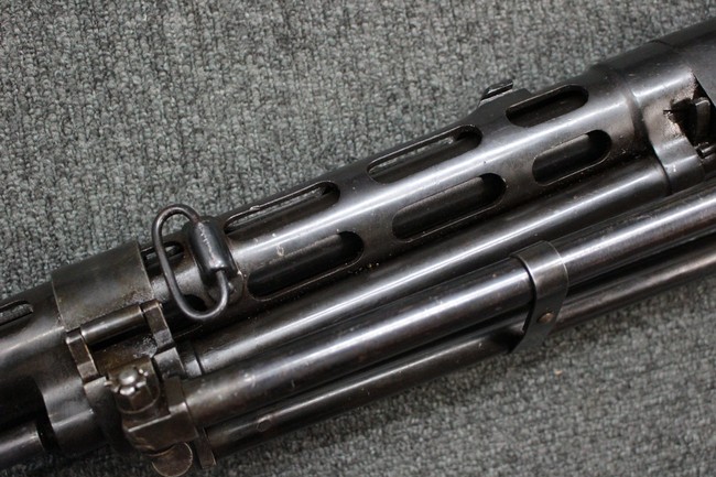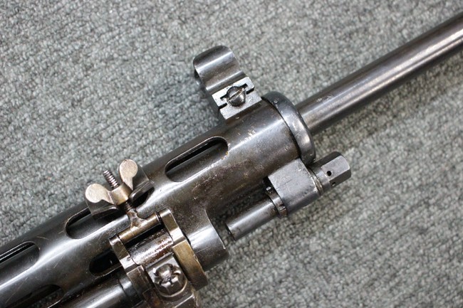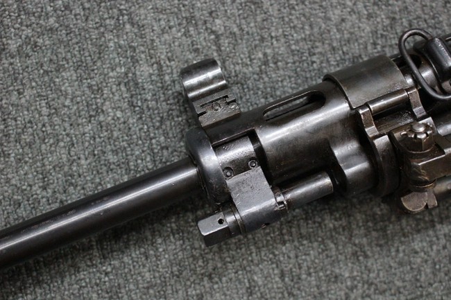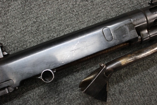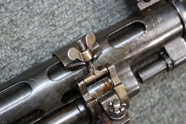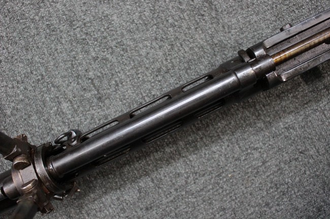 本品はソ連製のDP軽機関銃をフィンランド軍が鹵獲・使用した品で、レシーバー等にSAの刻印が確認できます。 アッパー・レシーバー後部上面にはシリアルNoの他、コヴロフ工廠を示す砲弾に矢印の刻印や製造年の刻印などが入っています。 シリアルはアッパー及びロア・フレームでマッチしています。本品はDP軽機関銃としては中期の生産品で、冷却フィンの省略された銃身が付属しています。 製造年は1939年で冬戦争での捕獲品であった可能性が高いと思われます。