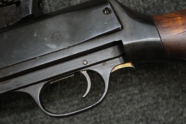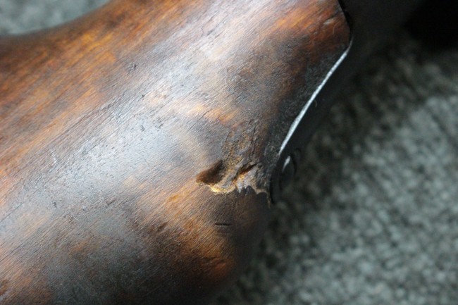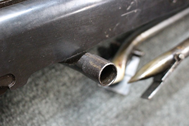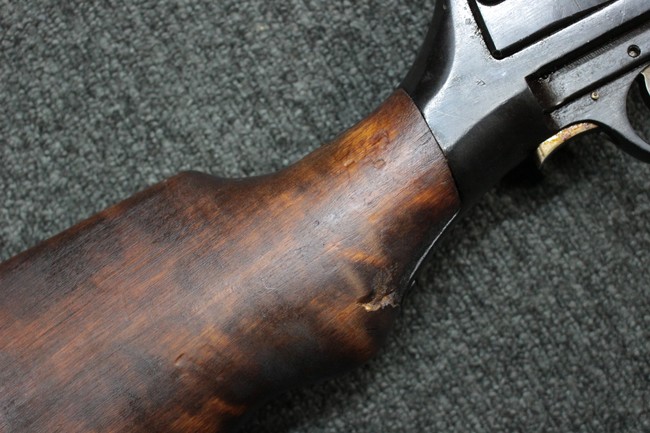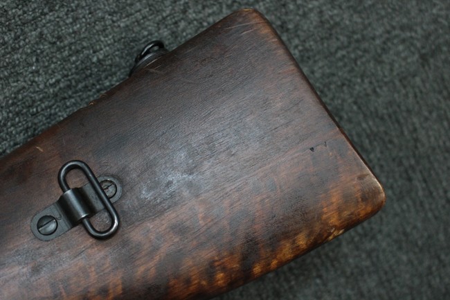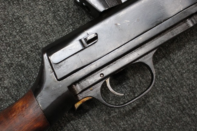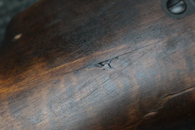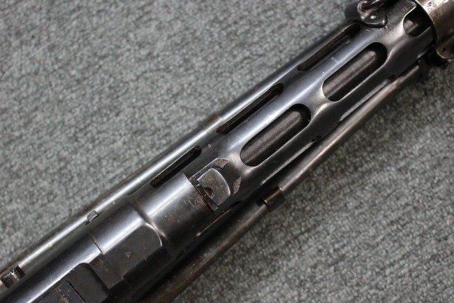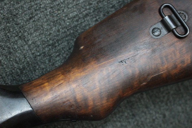 全体に適度な使用感が見受けられ、金属部はやや小傷や擦れ、角の部分など一部に仕上げが落ちて金属の地肌が表れている箇所や右側二脚の下部に凹みが見受けられるものの、他に目立った破損や欠損等は見られず、概ねしっかりとした状態が保たれています。 木製のバット・ストックについても、若干の打ち傷や線傷等が見受けられるほか、上面と下部にやや大きな打ち傷と欠けが見受けられますが、これ以外に現状目立った破損等は見られず、各部の取り付けもがたつき等は見られません。 マガジンの着脱や二脚の展開、リア・サイトの調整等については問題なく行う事が可能です。 SA刻印が打刻された付属のマガジンについても、やや小傷や擦れ、若干のアタリは見られますが、大きな変形などは見受けられず、概ねしっかりとした状態が保たれています。 尚、マガジン・スプリングは入っています