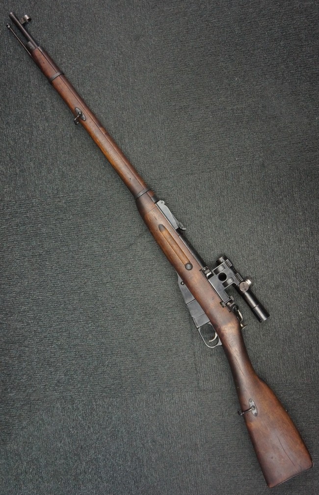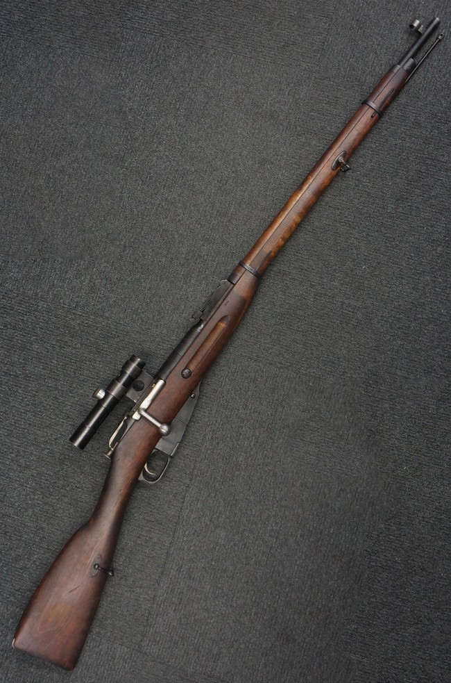 第二次世界大戦中、ソ連軍は狙撃兵に力を入れ、女性スナイパーなど多くの英雄が生まれました。 当時のプロパガンダではこの狙撃銃型の写真がよく使用された為、一般にはM1891/30は狙撃銃として認識されることが多かった程です。 第二次世界大戦中に狙撃兵から高い評価を受けたPUスコープ搭載型のM1891/30 狙撃銃は、1960年代にドラグノフ SVD 狙撃銃が採用されるまで制式採用されており、その後も限定的に使用が続けられました。【本個体の説明】