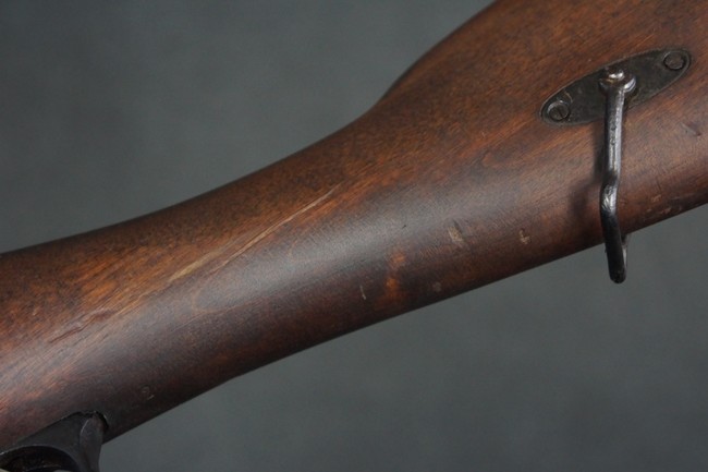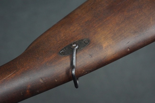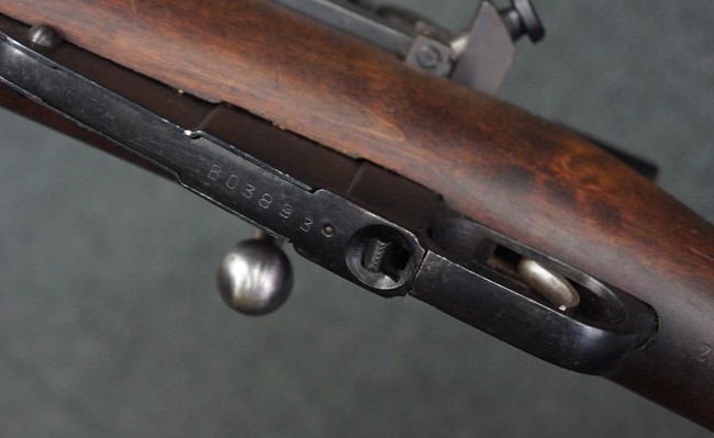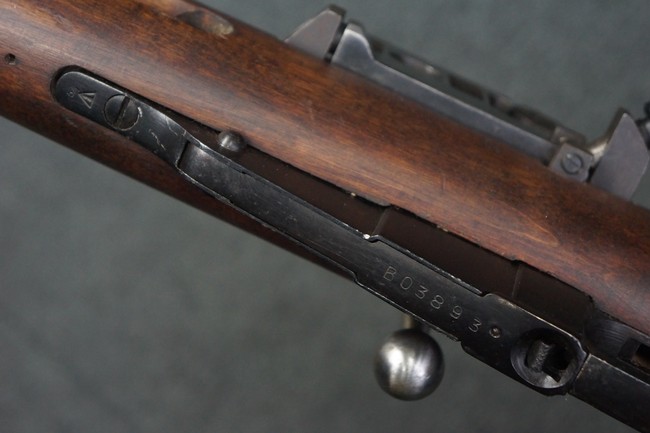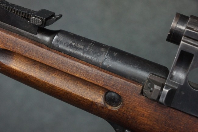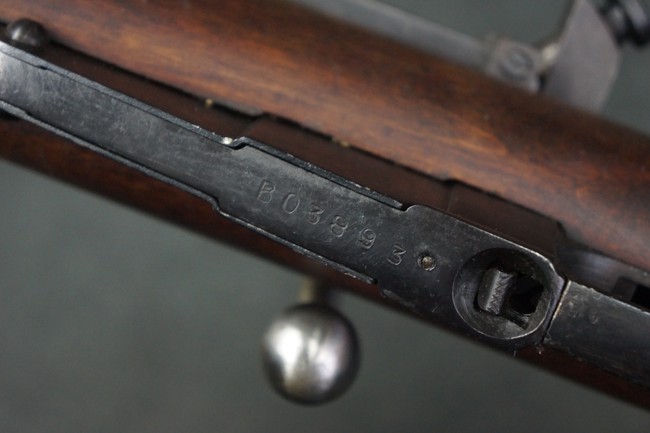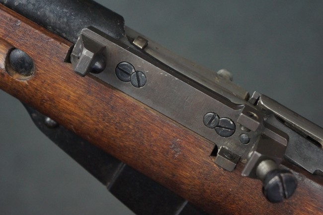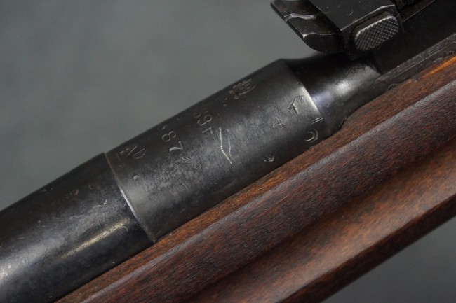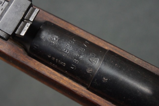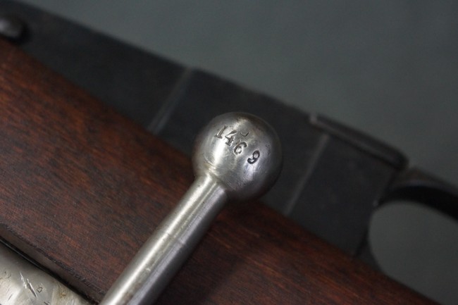 本品の銃本体は1939年イジェフスク製で、レシーバーは丸形となっており、薬室上面にはシリアルNo.に加えて、イジェフスク造兵廠製を示す刻印や製造年を示す刻印が確認出来ます。 また、薬室左側面にはフィンランド軍を示すSAの刻印等も見られます。 各部のシリアルNo.は、ボルトが1469、弾倉底板が3839となっており、バット・プレートはシリアルNo.13075が打ち消されています。 その他、トリガー・ガードにイジェフスク造兵廠、リア・バンドにツーラ造兵廠製を示す刻印が確認出来ます。
