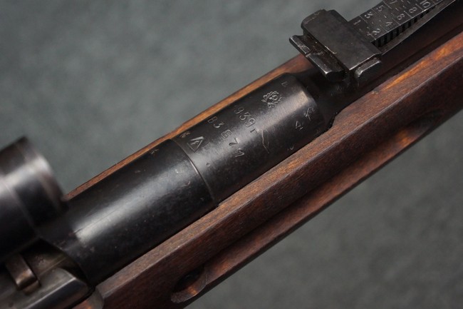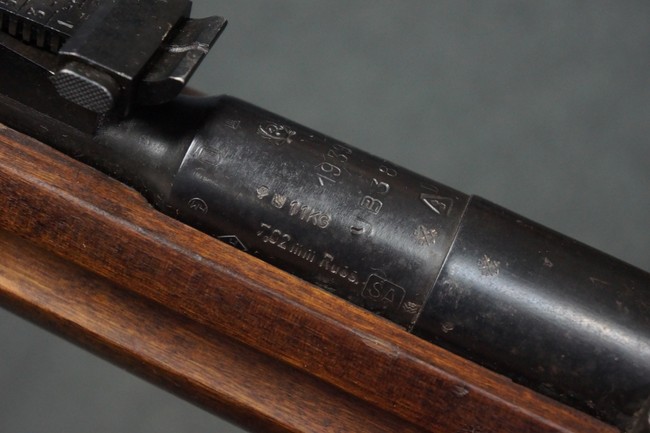 M1891/30はM1891の改良型で、第二次世界大戦時のロシア軍主力小銃です。 M1891/30ではM1891で問題とされた点が改良されましたが、機関部の構造や使用弾薬など基本的にはM1891と同じです。 第一次世界大戦の経験から、各国では歩兵用小銃の短縮化が図られており、M1891/30もM1891に比べ銃身が10cm程短くなりました。 また、兵士の間では不評であったアルシン表記のリア・サイトをメートルに変更すると共に、リア・サイトとフロント・サイトが強化され、フロント・サイトに筒状のカバーが追加されました。 さらに生産工程の簡略化も図られ、機関部前方にある銃身受部が、八角形から円筒形へ変更されました。 モシンナガンM1891/30小銃には、新規製造された個体の他、既存のM1891からM1891/30相当に改修された個体の2種類が存在します。 尚、M1891からの改修型は、銃身受部が八角形のままです。 M1891/30にはM1891からの改修型や新造型などがあり、刻印は各種のバリエーションが存在します。