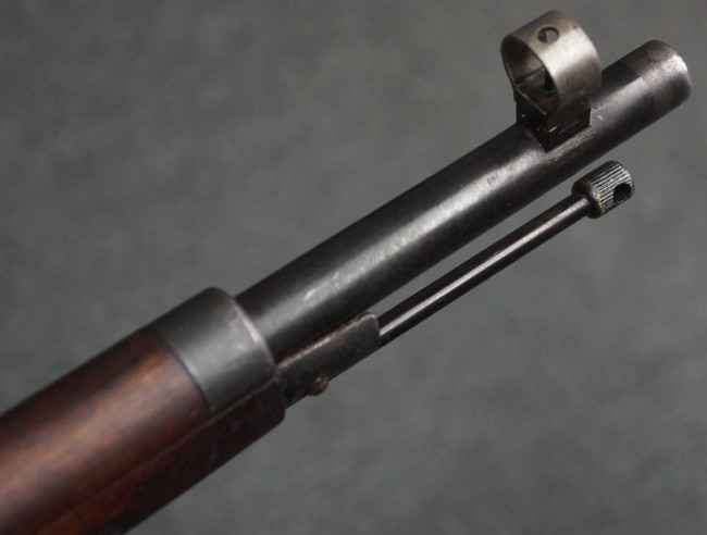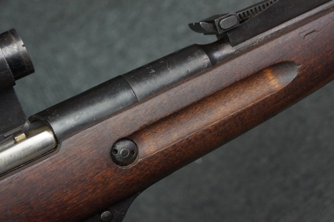 本品の銃身や機関部といった金属部は、やや打ち傷や擦れ、経年による褪色の他、一部に表面錆痕が見られるものの、大きな破損や欠損は見られず、黒染め仕上げも比較的残っています。 白磨きのボルトについても、やや打ち傷や時代錆は見られるものの、現状目立った腐食等は見られません。 木製銃床はフィンランドで整備された際に交換されたものと考えられ、若干の打ち傷や擦れを除いて目立った破損等は見られず、比較的良好な状態が保たれています。 銃床先端下部のクリーニング・ロッド取り付け部付近に僅かな欠けが見られますが、殆ど気にならないレベルのものです。 傷み易いバット・プレートについては、角の部分にやや擦れや表面錆が見られるものの、目立った変形等は見られず、銃床への取り付けについてもがたつきもなくしっかりとしています。 付属のPUスコープは、外装に若干の表面錆や擦れは見られますが、機能的な問題はなく、ウィンデージ及びエレベーションの調整も問題なく行う事が可能です。 スコープの視野内には若干の曇りが見られますが、塵や黴の混入などは殆ど見られず、レティクルもはっきりと確認する事が可能です。 革製のスコープ・カバーが付属いたします。 スコープは取り付け時のがたつき等は見られず、しっかりと固定されます。 スコープは1943年に第297工場で生産された個体を戦後整備したもので、チューブ部分にはメーカー刻印やシリアルNo.433640の他、「1953」の刻印が確認出来ます。 リア・サイトの調整や弾倉底板の開閉については問題なく行う事が可能です。 尚、弾倉バネは一部除去されています。 クリーニング・ロッドが付属いたします。