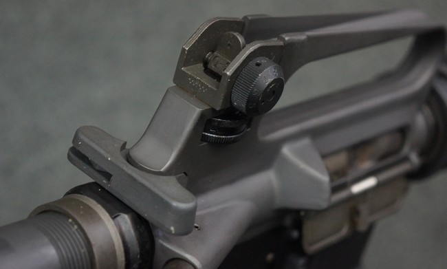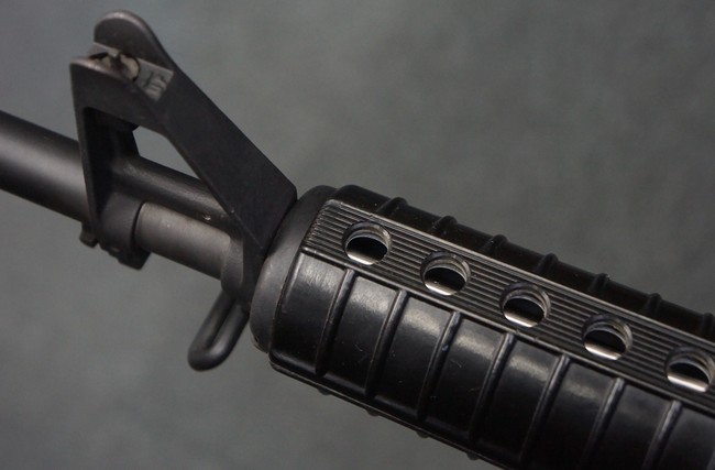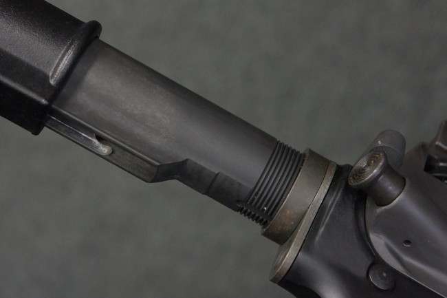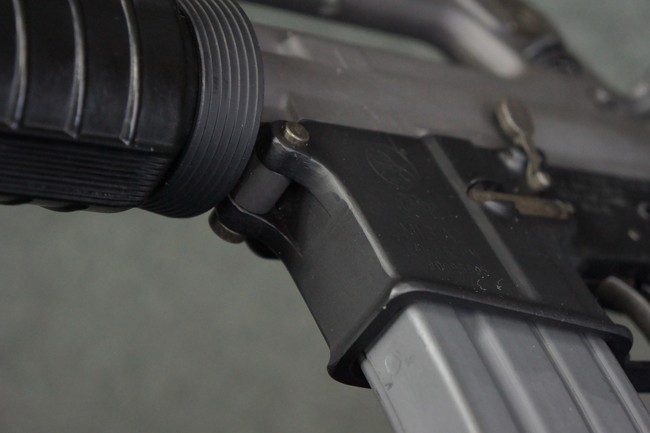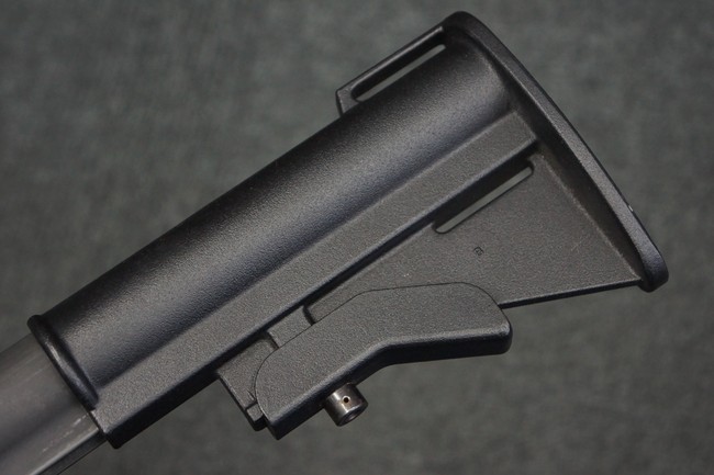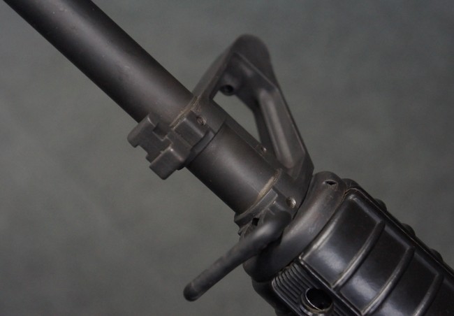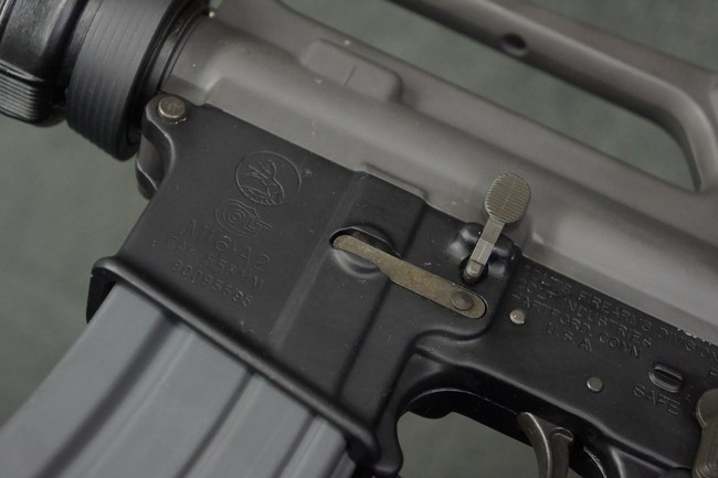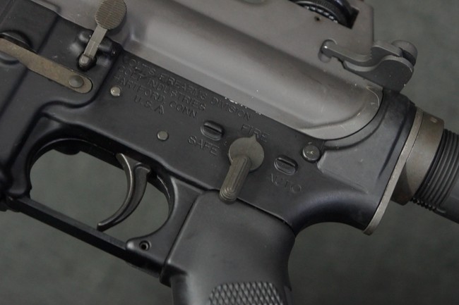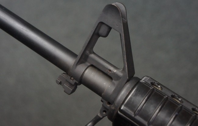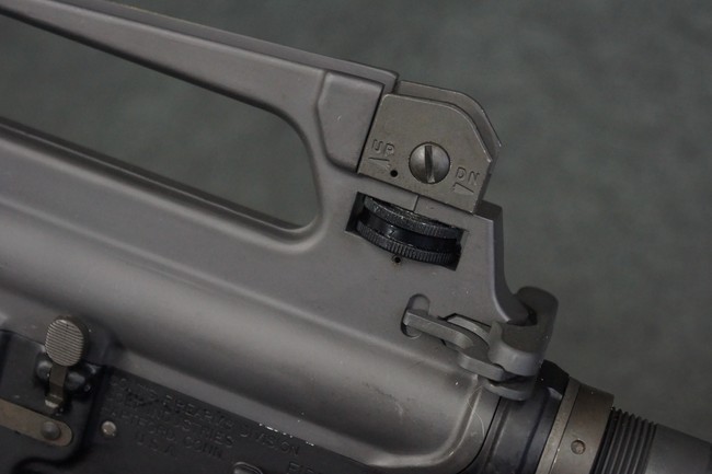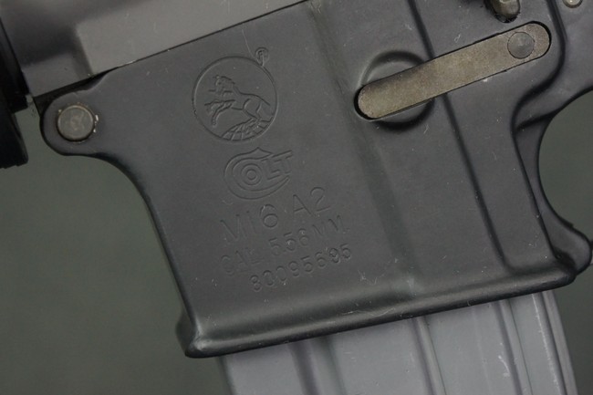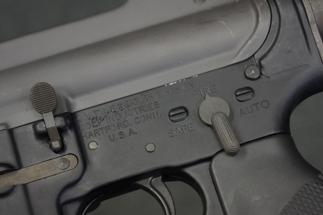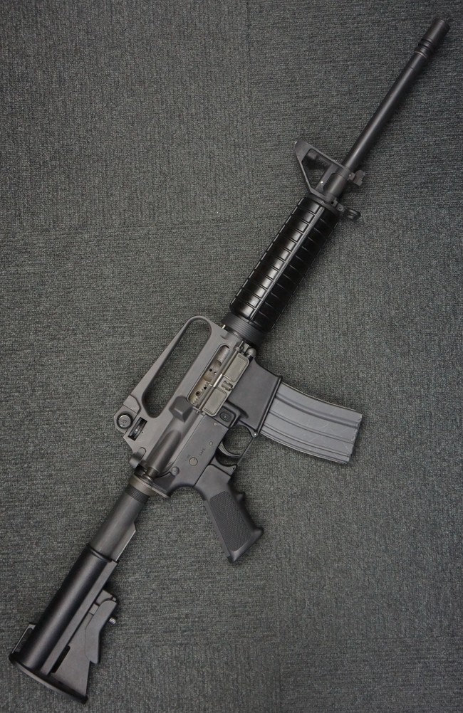 サード・パーティ製の民間用ロア・レシーバーとキャリング・ハンドル着脱可能なアッパー・レシーバー、16インチ・バレルを組み合わせた、M16A2 ショーティ風の自動小銃です。 ロア・レシーバーにはコルトのロゴやM16A2のモデル名刻印等が追加で打たれており、セレクターについては、本来はセミ・オートマチックのものに「AUTO」のポジションが追加で打刻されています。 ストックについてもサード・パーティ製と思われ、3ポジションの伸縮式となっています。