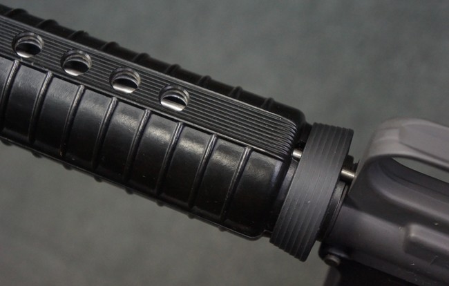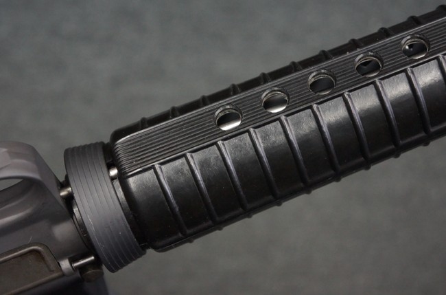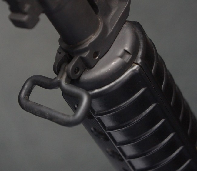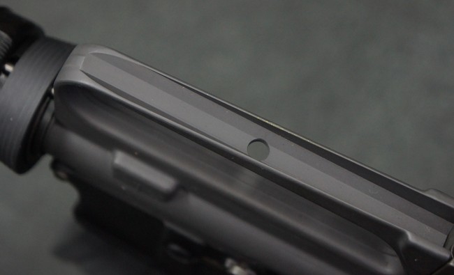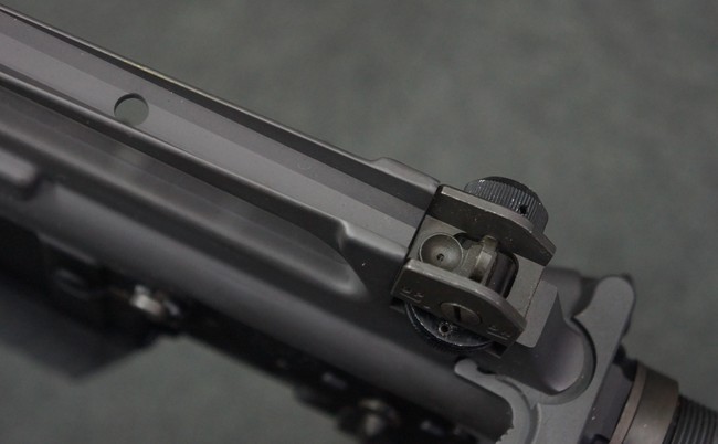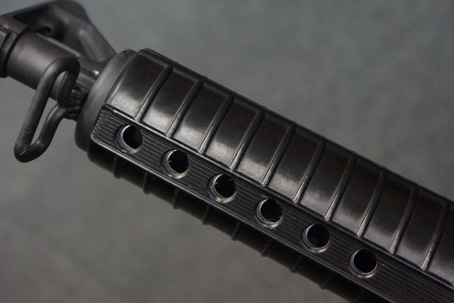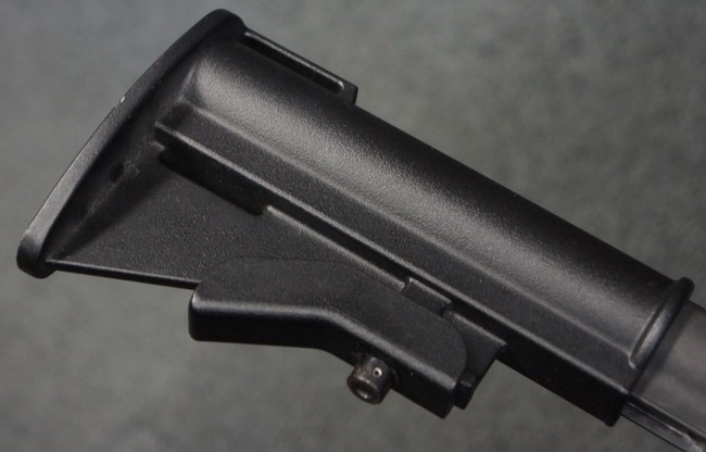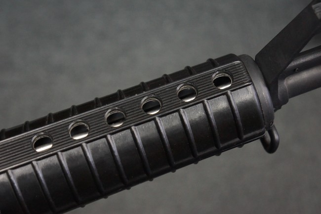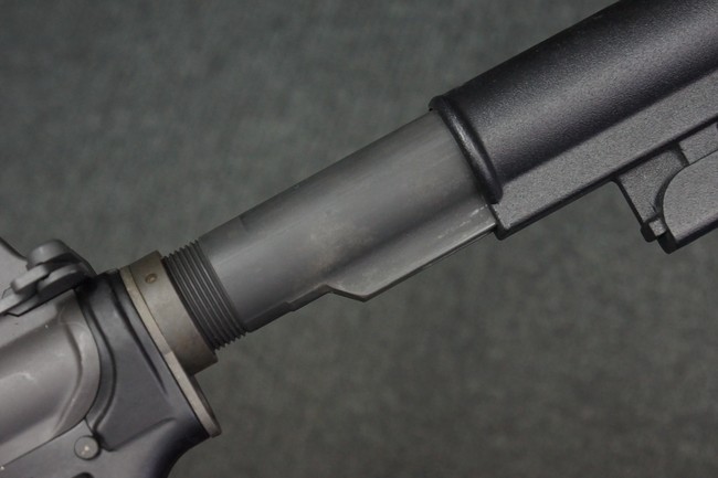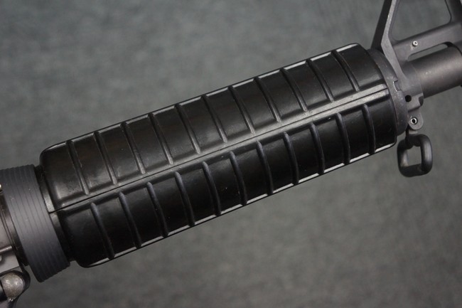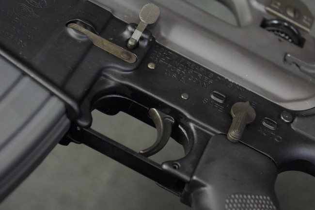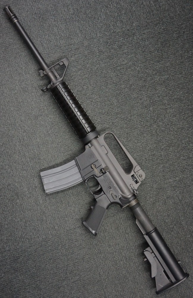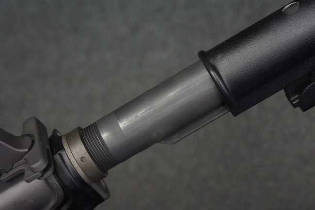 サード・パーティ製の民間用ロア・レシーバーとキャリング・ハンドル着脱可能なアッパー・レシーバー、16インチ・バレルを組み合わせた、M16A2 ショーティ風の自動小銃です。 ロア・レシーバーにはコルトのロゴやM16A2のモデル名刻印等が追加で打たれており、セレクターについては、本来はセミ・オートマチックのものに「AUTO」のポジションが追加で打刻されています。 ストックについてもサード・パーティ製と思われ、3ポジションの伸縮式となっています。