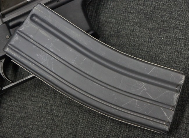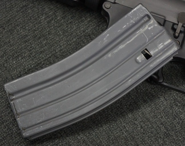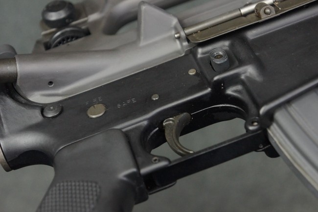 本品は旧ハッコー商事により輸入された品です。 銃身やレシーバーといった金属部は、若干の小傷や擦れが見受けられますが、目立った破損等は見られず、比較的良好な状態が保たれています。 アッパー・レシーバーはロア・レシーバーに比べてやや明るい色合いの仕上げとなっています。 フロント・サイト・ベースの固定ピンが1本欠品していますが、フロント・サイト・ベース自体はしっかりと固定されており、現状目立ったがたつきなどは見られません。 ボルト・キャリア表面にやや朽ち込み痕が目立ちます。 ハンドガードやグリップ、バット・ストックについても、若干の小傷や擦れは見られるものの、大きな破損等は見られず、コンディションは比較的良好です。 マガジンの着脱やリア・サイトの調整については問題なく行う事が可能です。 セレクター・レバーの切り替えについては、「SAFE」及び「FIRE」ポジションのみ選択可能となっており、「SAFE」ポジションでトリガーがロックされます。 付属のマガジンは30連タイプで、やや打ち傷や擦れ、一部に仕上げの剥落が見られますが、現状目立った凹みや変形等は見受けられません。尚、マガジン・スプリングは入っています。