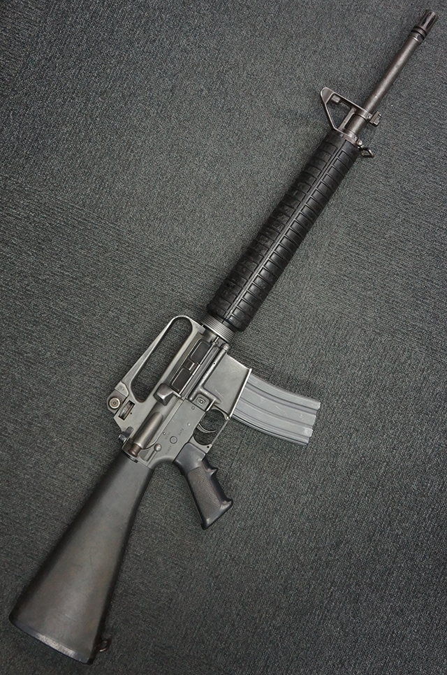 M16シリーズは、米国アーマライト社のユージン・ストーナーが設計し、コルト社が製造を行って1962年に米空軍が採用したM16 (コルト社内モデル名AR-15・M601) に始まる一連の自動小銃です。 M16は米陸軍でも採用が検討され、1967年にそれまでの仮制式名であるXM16E1に代わり、M16A1の陸軍制式名が与えられました。 M16A1 (コルト社内モデル名M603) は、仮制式モデルであるXM16E1 (陸軍向けM602) と同様にボルト・フォワード・アシストを備えており、マガジンから薬室への装填不良が発生した際にもボルトを手動で前進させる事が可能となっています。 また、M16A1ではマガジン・リリース・ボタンの誤操作を防ぐ為のリブが追加された他、ボルトを始め内部部品が強化されました。 M16A1はベトナム戦争拡大に伴う大量の需要に応える為、コルト社以外にもゼネラル・モータースのハイドラ・マチック・ディビジョン及びハーリントン&リチャードソン社でも生産が行われた他、輸出向けとしても大量に生産され、これらの輸出向けM16A1にはM613のコルト社内モデル名が与えられました。