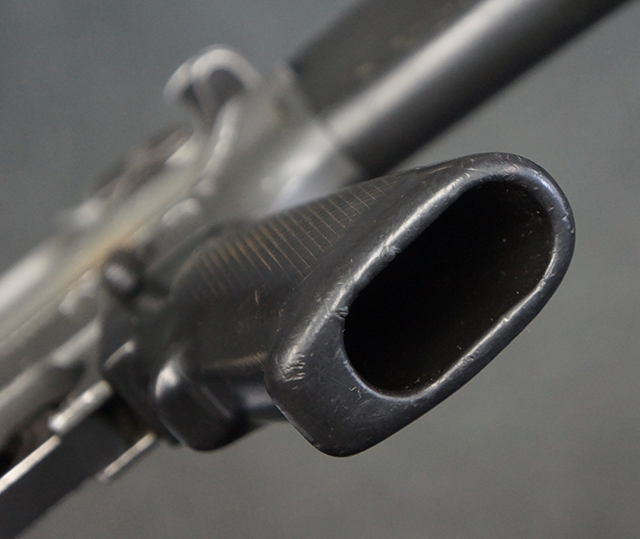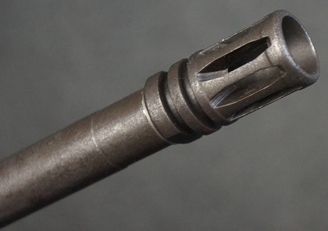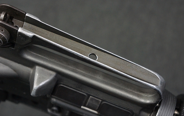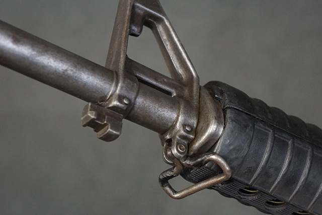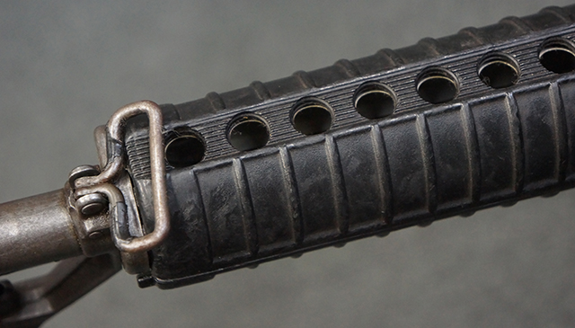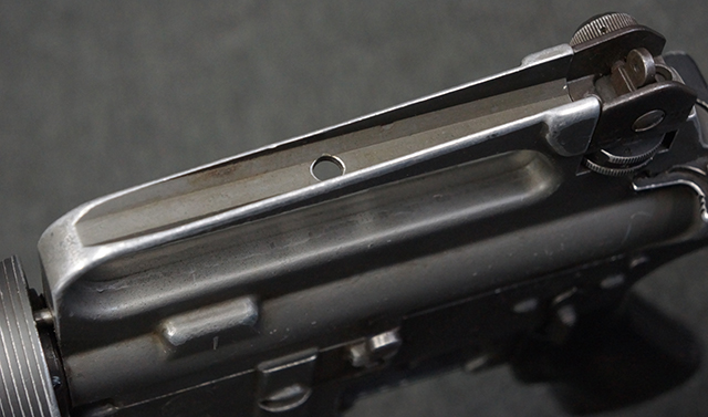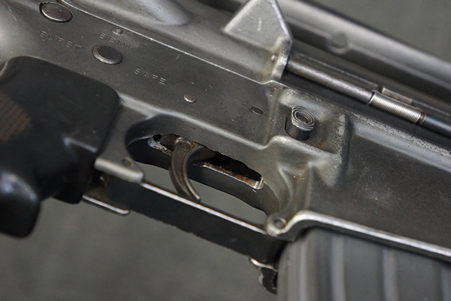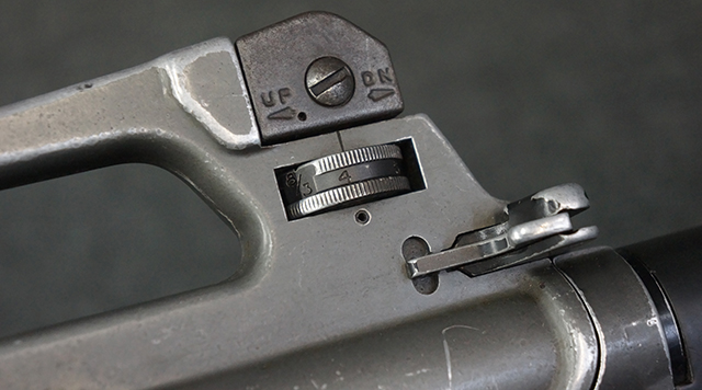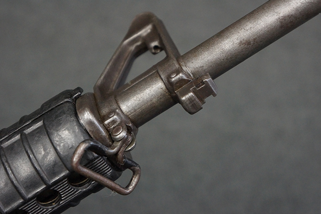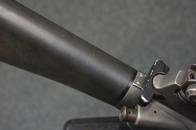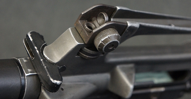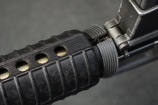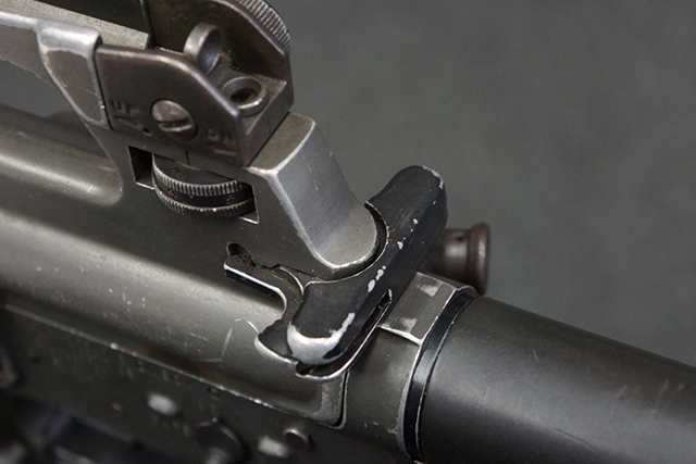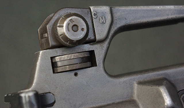 ダイヤル式のリア・サイトはエレベーション、ウィンデージともにしっかりとクリック感があり、問題なく操作可能となっています。 セレクター・レバーの切り替えについても問題なく行う事が可能ですが、トリガーの連動はありません。 テイクダウン及びアッパー・レシーバーとロア・レシーバーの分割は加工により行えなくなっています。 ハンドガード・リングの下部にスリットが入っています。