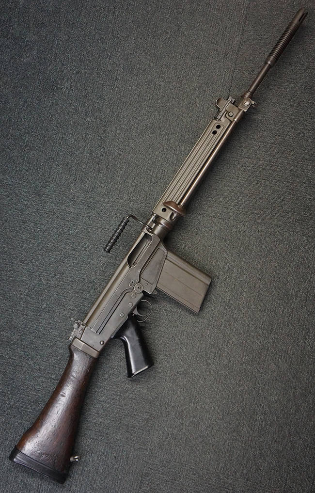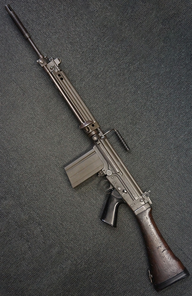 ベルギー FN社のFAL自動小銃を元に、オーストリアで改良・開発された自動小銃で、1958年に行われたトライアルでスペインのセトメ自動小銃及び米国のAR10自動小銃を破ってオーストリア陸軍に制式採用となりました。 FAL自動小銃からの主な変更点として、プレス製のメタル・ハンドガード及び折り畳み式の二脚が装備されているのが特徴です。 このため外観が西ドイツのGew.1自動小銃に酷似していますが、銃口部にチューブ径22mmのグレネード・ランチャーとして機能するサプレッサーが装備されている点が異なります。 このサプレッサーにはSTRIMやMECARといったライフル・グレネードを装着する事が可能でした。 また、このサプレッサーの先端には4本の溝が設けられており、内部にはワイヤーを捉えるためのネジが切られています。 このサプレッサー先端部分でワイヤーを捉えて銃を発射する事により、ワイヤー・カッターとして使用する事も可能となっています。 StG.58自動小銃の内、最初に納入された2万挺はベルギーのFN社で生産された品を輸入した物でしたが、その後オーストリアのステアー・ダイムラー・プフ社でライセンス生産が行われました。 初期生産品の銃床は木製の物が装備されていましたが、後に黒色の樹脂製銃床へと変更されています。 また、オーストリアで生産された品のガス・プラグには、取り外しボタンにL字型の板が取り付けられている物も見られます。 尚、StG.58自動小銃にはGew.1自動小銃と同様に銃剣は用意されていませんでした。 StG.58自動小銃は、1977年に後継のステアーAUG自動小銃が制式採用された後も、1980年代半ば頃まで多くの部隊で使用された他、現在でもオーストリア軍の訓練用小銃として使用されています。 (KK)