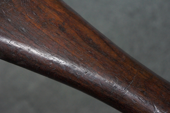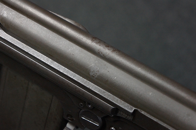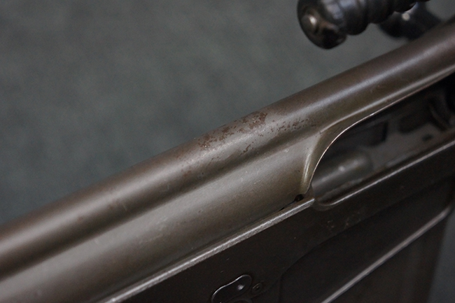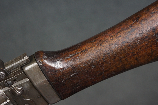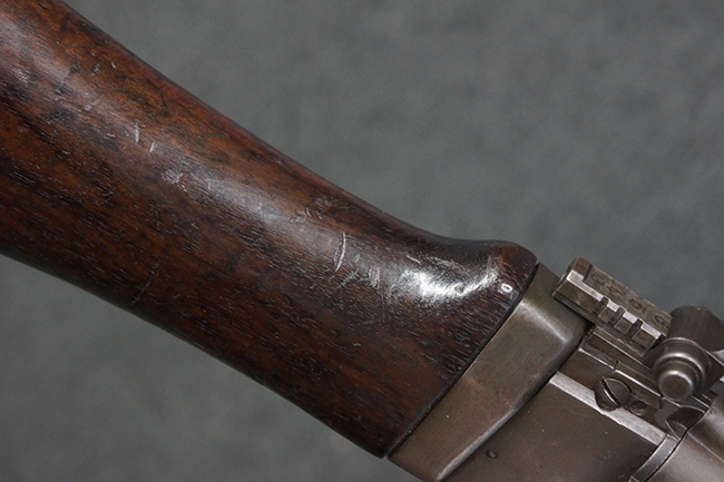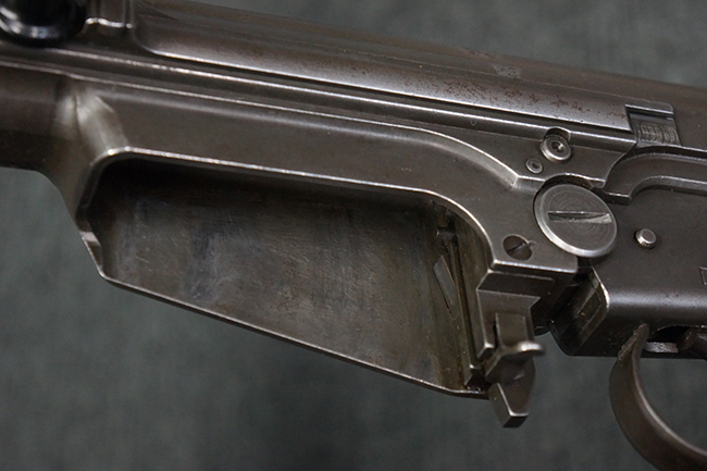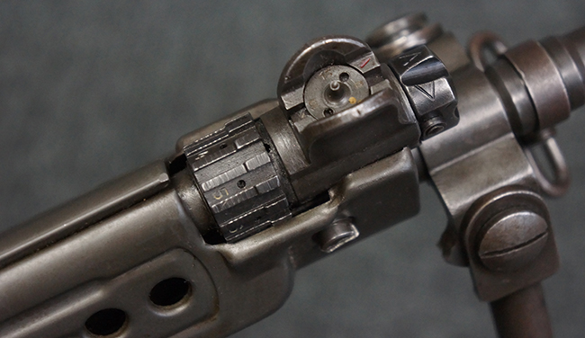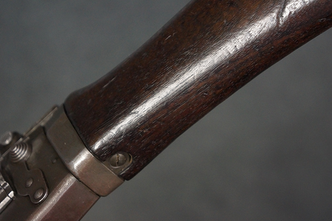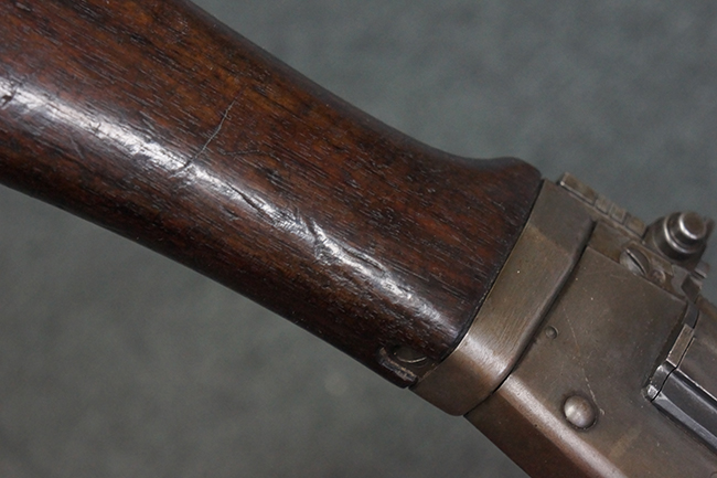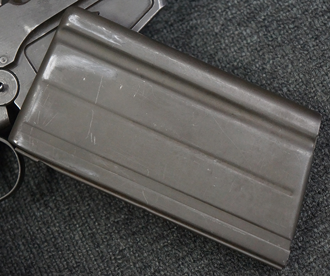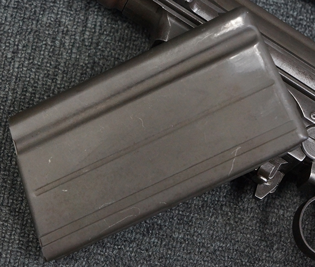 全体にやや使用感が見受けられますが、適度なもので雰囲気の良い状態です。 金属部は、やや小傷や擦れ、経年による褪色の他、一部に表面錆痕が見られますが、目立った欠損等は見られず、概ねしっかりとした状態が保たれています。 木製のバット・ストックも、細かな打ち傷が全体に見られますが、大きな破損等は見られず、がたつきなども見られません。 樹脂製のバット・プレートとグリップも、やや打ち傷や若干の擦れが見られますが、現状目立った破損は見受けられません。 マガジンの着脱やリア・サイトの調整については問題なく行う事が可能です。 セレクターの切り替えも可能で、安全位置でトリガーがロックされます。 また、レシーバー左側面のレバーを操作する事により、レシーバーのテイクダウンも可能となっています。 付属のマガジンはやや小傷や経年による褪色が見られますが、目立った凹みや変形等は見受けられません。 マガジン・スプリングは入っています。
