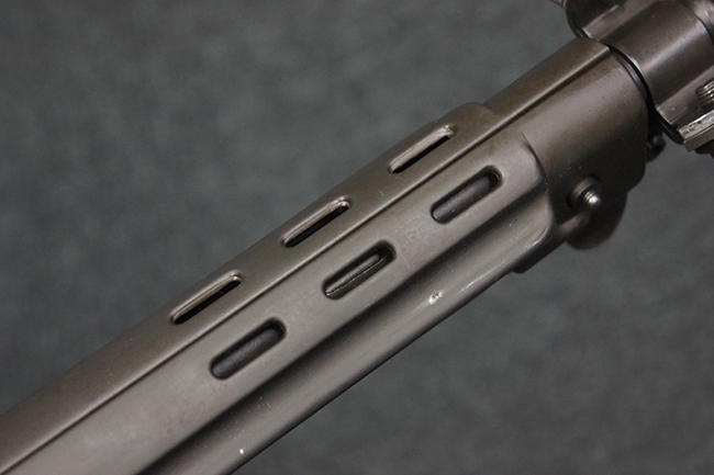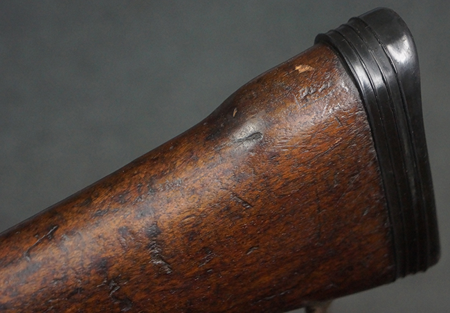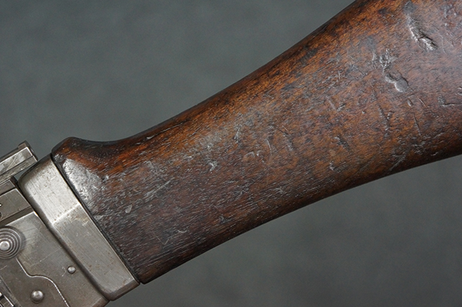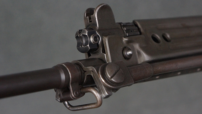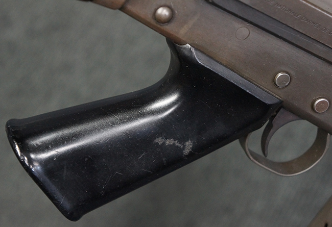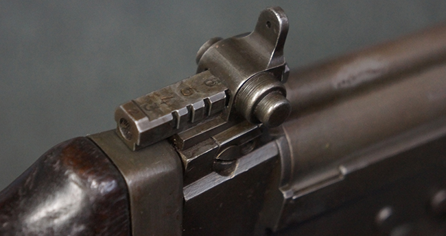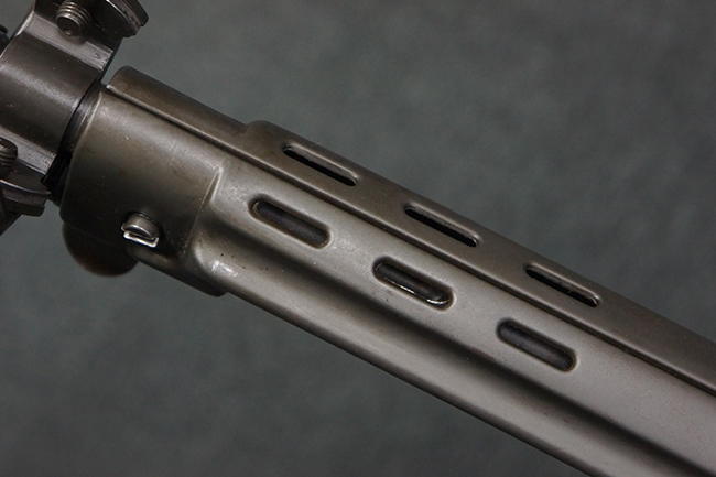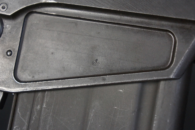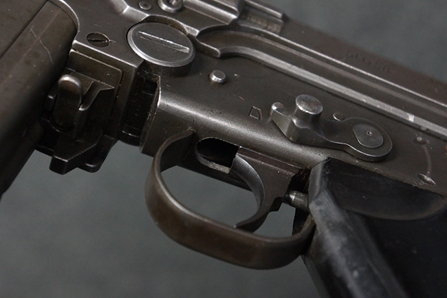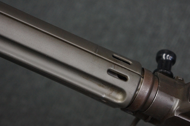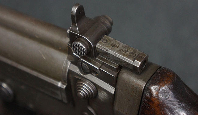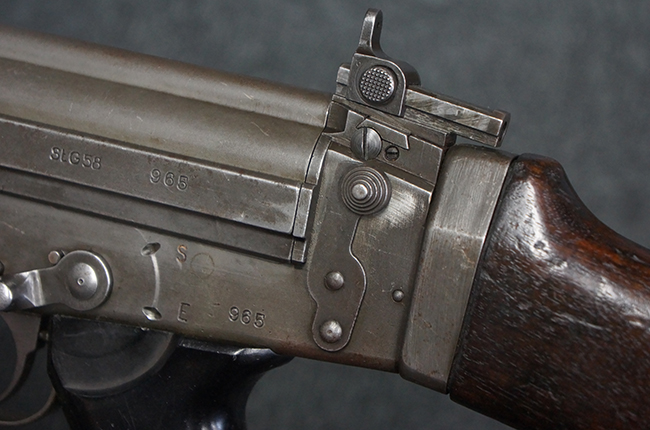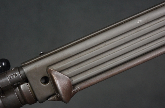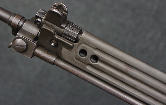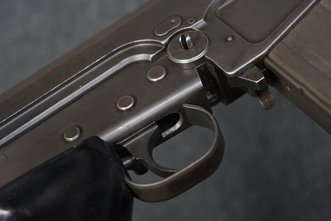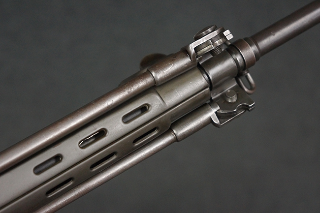 本品はアッパー・レシーバー右側面にはFN社を示す「FABRIQUE NATIONALE D'ARMES DE GUERRE HERSTAL BELGIQUE」のメーカー刻印が入っている事から、初期にベルギー FN社で生産されたStG.58 自動小銃である事が判ります。 本品のバット・ストックは木製で、セレクターは「S-E-D」のドイツ語表記となっています。 シリアルNo.は、アッパー/ロア・レシーバー及びボルト・キャリアでマッチしています。
