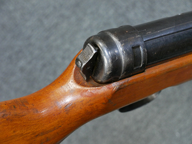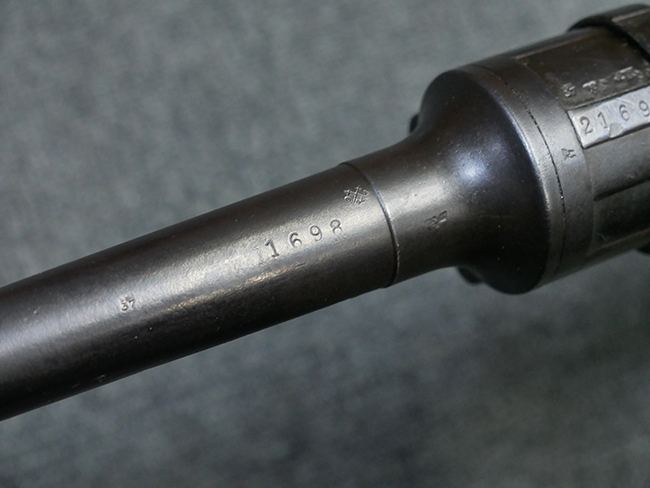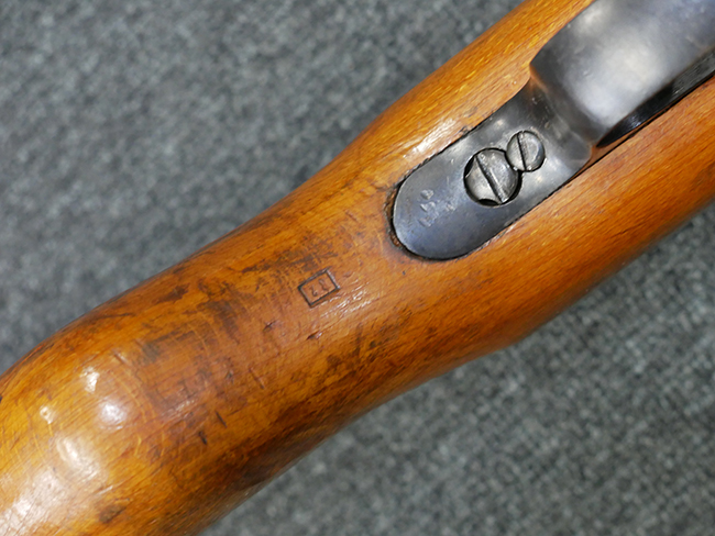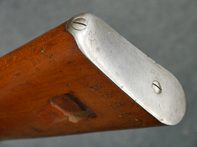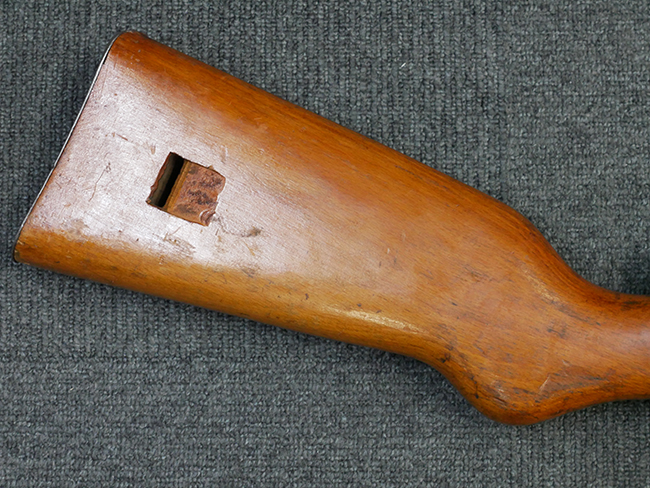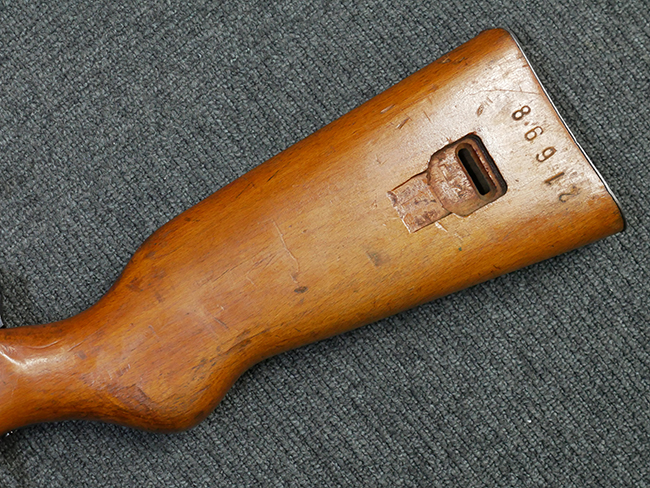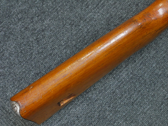 木部には使用感が見られ、細かい打ち傷、擦れが見られますが、大きな欠損などは無く、良い時代感となっています。 左側の銃床下部には21698の刻印が確認できます。