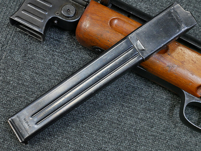 MP41ではテレスコピック式のリコイル・スプリング・アッセンブリーにMP40からの流用が見られる他、レシーバーについても若干の改良を加えた上で流用されています。 また、バレルやマガジン・ハウジングの設計にもMP40との共通箇所が見られます。 尚、MP41はMP38やMP40用の弾倉が共用可能である他、MP41の刻印が入った32発の専用弾倉も用意されました。