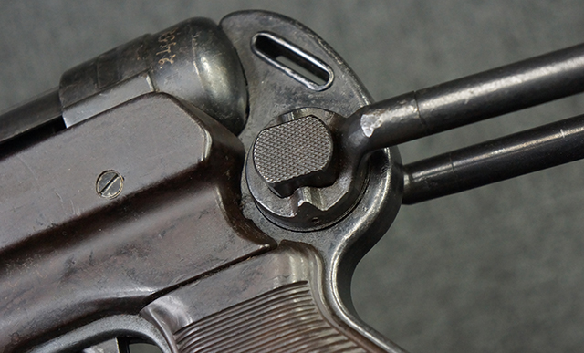 MP38ではレシーバーを無垢の鉄材からの削り出しで製作していた他、グリップ・フレームが鋳造アルミ合金製でしたが、MP40では生産性を向上させるためにレシーバー及びグリップ・フレームに鋼板プレス加工を採用しました。 これにより製造工程が簡略化された他、ドイツ国内で調達が難しかったアルミニウムの節約にも繋がりました。 また、MP38ではマガジンに弾薬を装填した状態で銃を後部から落下させた際に、ボルトが前進位置から跳ね上がって暴発する危険性がありましたが、1940年後半にドイツの銃器設計者ヒューゴ・シュマイザーによってコッキング・ハンドルを内側に押し込む事によりボルトを閉鎖位置で固定するフォワード・ロック・セーフティが開発されました。 このセーフティ機能を備えた新たな2ピース型のコッキング・ハンドルは、1942年半ば以降に製造されたMP40から本格的に装備されるようになりました。