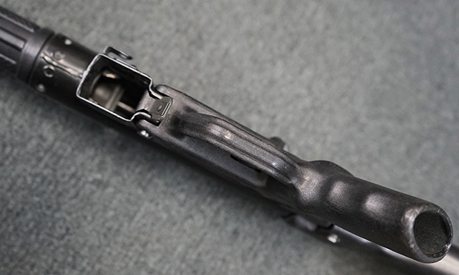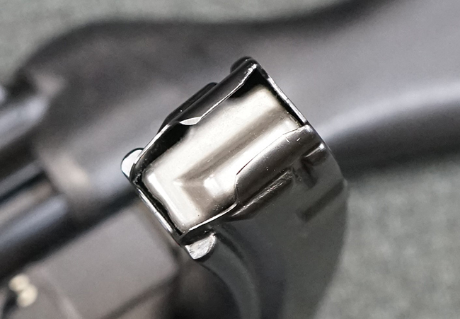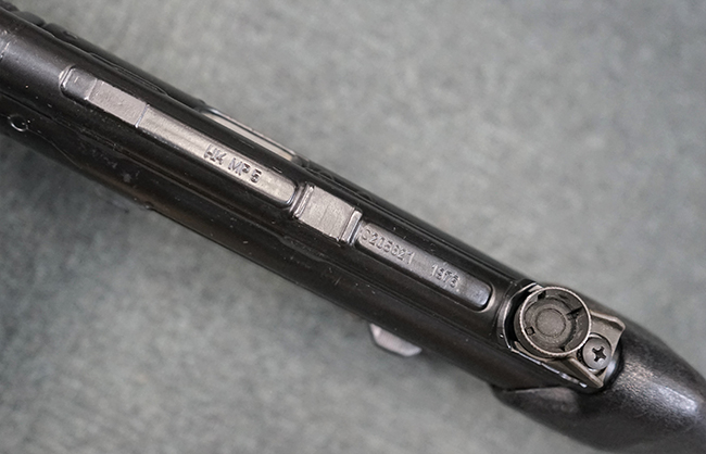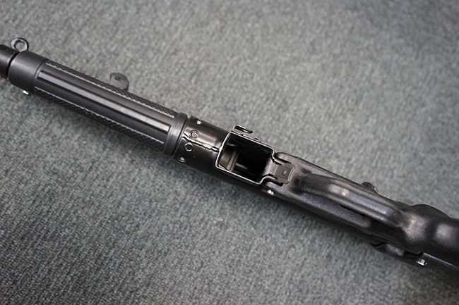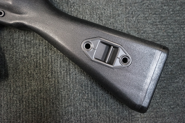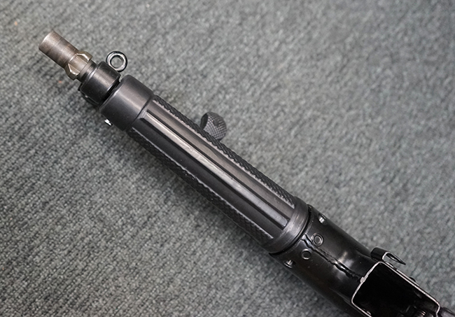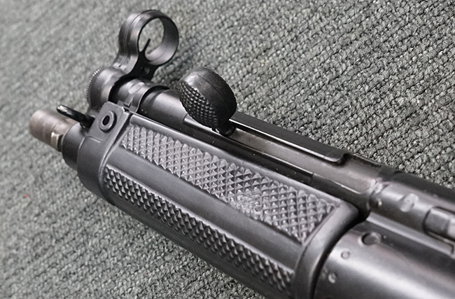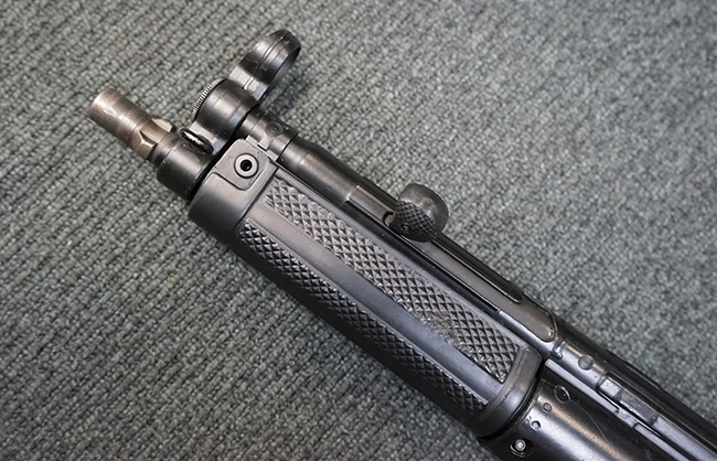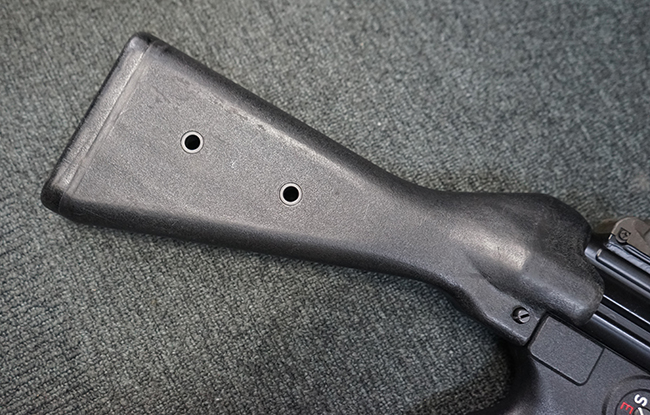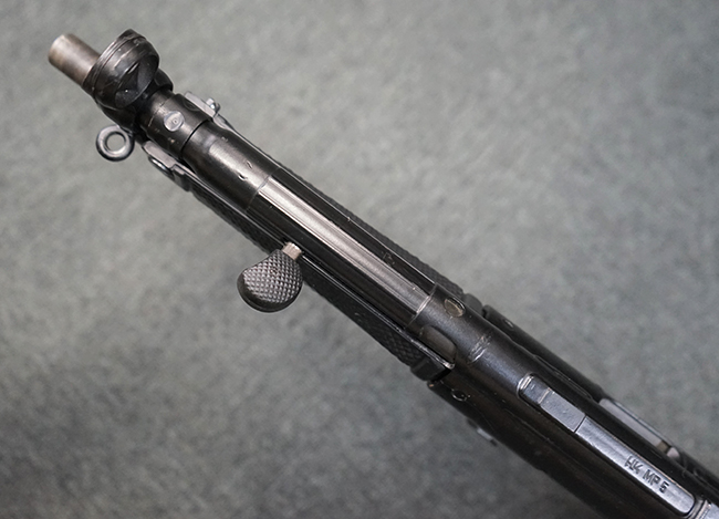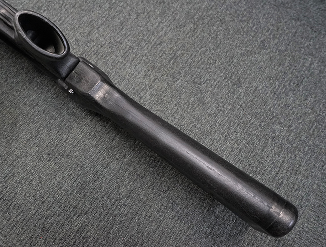 本品の金属部はやや小傷や擦れが見受けられるものの、大きな欠損や変形等は見受けられず、黒色の焼付塗装仕上げも大部分に残った比較的良好な状態が保たれています。 トリガー・ハウジングやバット・ストックといった樹脂部についても、若干の打ち傷や擦れは見られるものの。こちらも大きな破損等は見られず、比較的良好な状態が保たれています。 スリム・タイプのハンドガードについては、他の部位に比べてやや使用感が目立ち、左側面の一部表面に若干の削れが見受けられます。