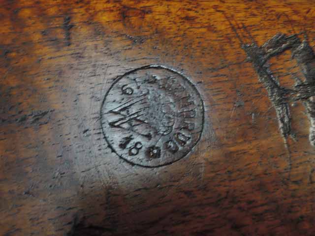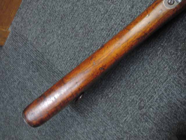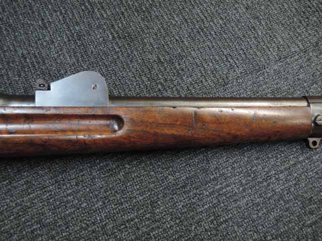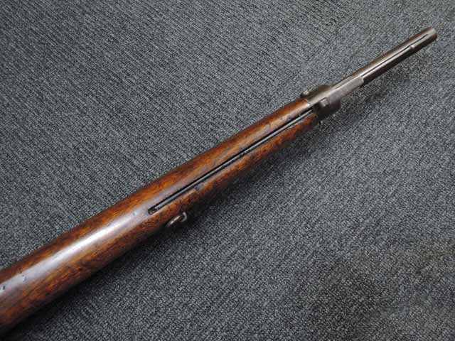金属部分の表面上は全体的に錆び色が出ていますが状態は安定しており朽ち込み錆は見受けられません。 金属の重厚感と光沢を残した雰囲気の良い経年を感じさせます。 木製ハンドガードと木製マガジン・カバーはNo.1 NEW MODEL 騎兵銃には付属していましたが、本品には付属していません。 ハンド・ガードとマガジン・カバーは欠損しているのではなく、初めから付かない改良型です。