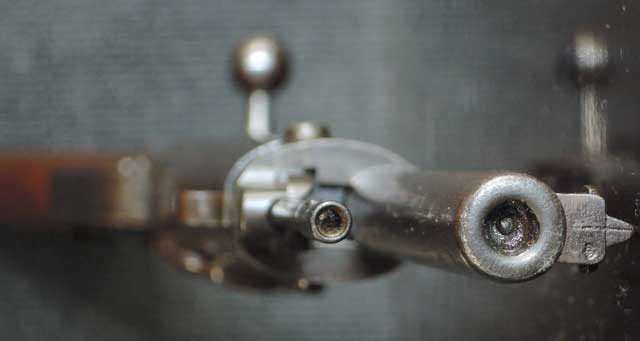 この方式はライフル弾を5発くわえ込むクリップごと上方から装填。 クリップはクリップ・キャッチにより上方への逆戻りを防ぎ、残弾があるうちは弾を装弾するバネのテンションでクリップも止まっていますが、 弾が無くなるとバネのテンションが無くなり、クリップは下方の穴から落ちる、という他に無いユニークな方式でした。