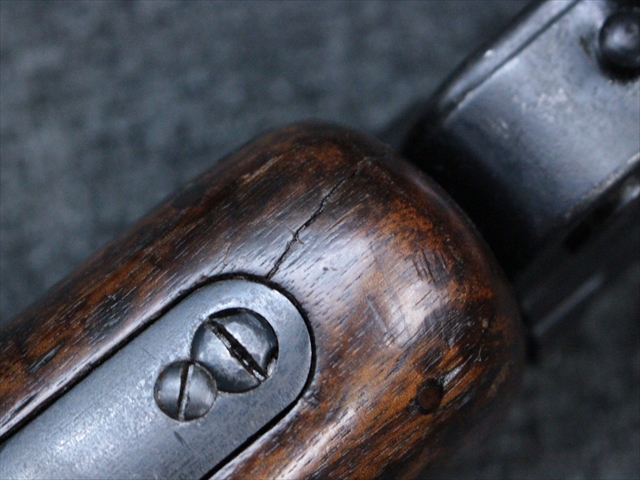 木部には使用感が見られ、またフォアグリップ部前方にひび割れがあり、ピンによる補修が行われていますが、こちらもあまり目立たず強度的に問題は感じられません。 大きな欠損などは無く、良い時代感となっています。