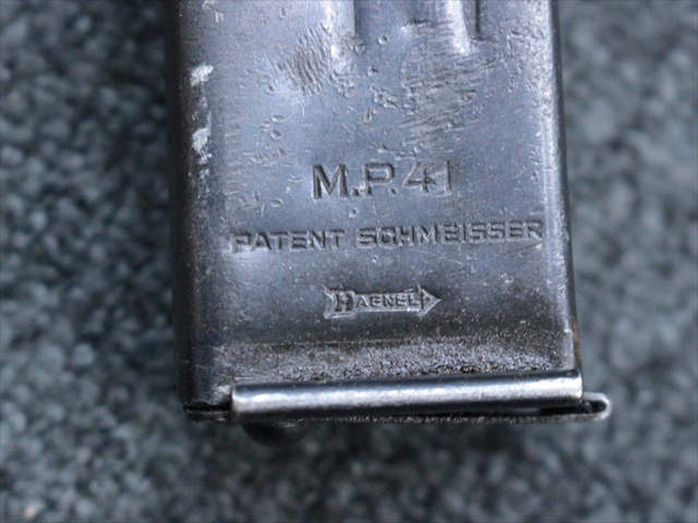 経年による擦れ等は見られますが、マガジンは「MP41 PATENT SCHMEISSER HANEL」と刻印の入った専用品の品です。 バネがあり、若干のがたつきはありますが着脱は大変スムーズです。