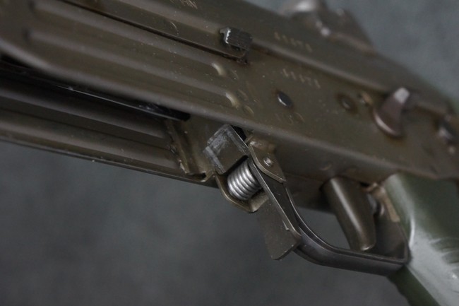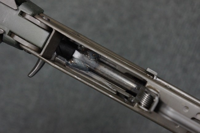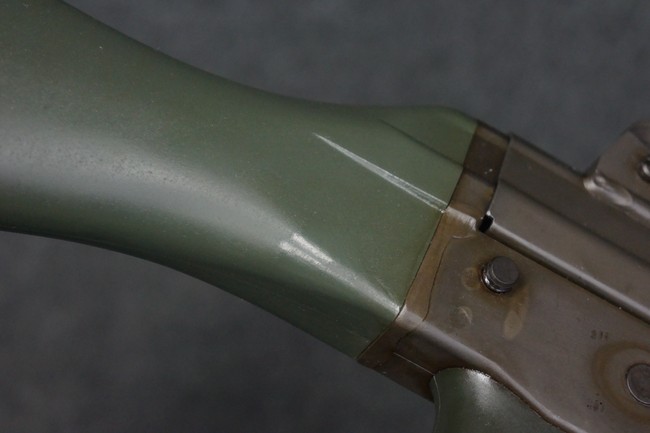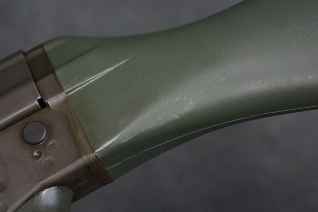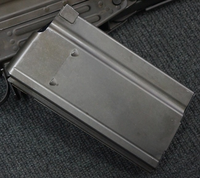 本品は未使用品を無可動加工した品で、機関部等の金属部には保管や無可動加工に伴う若干の小傷や擦れを除いて、目立った錆等は見られず、概ね良好な状態が保たれています。 樹脂製のハンドガードやグリップ、バット・ストック、バット・プレートについても同様に、打ち傷等は最小限で、こちらも良好なコンディションが保たれています。 マガジンの着脱やリア・サイトの調整、二脚の展開、レシーバーのテイクダウン操作については問題なく行う事が可能です。 付属のマガジンについても、若干の小傷や擦れを除いて目立った凹みや変形等は見られません。 尚、マガジン・スプリングは入っています。
