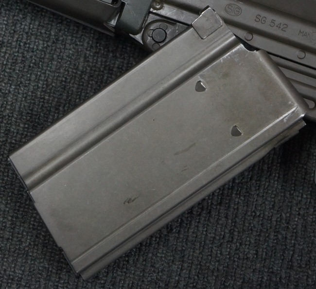SIG SG542 自動小銃は、スイスのSIG社で開発された5,56mm×45弾を使用する自動小銃であるSG540を基に、使用弾薬を7,62mm×51 NATO弾としたモデルです。