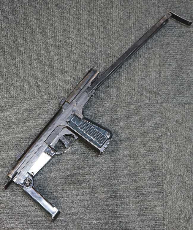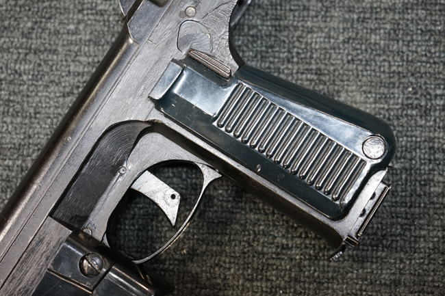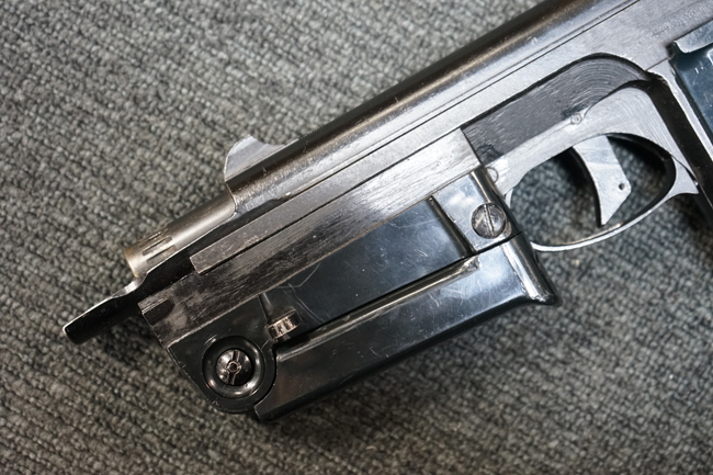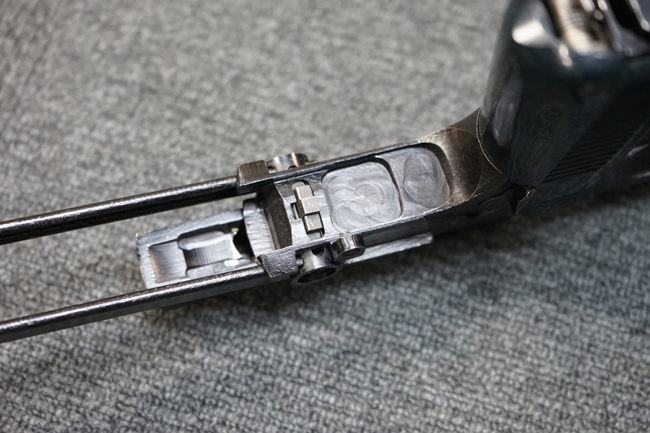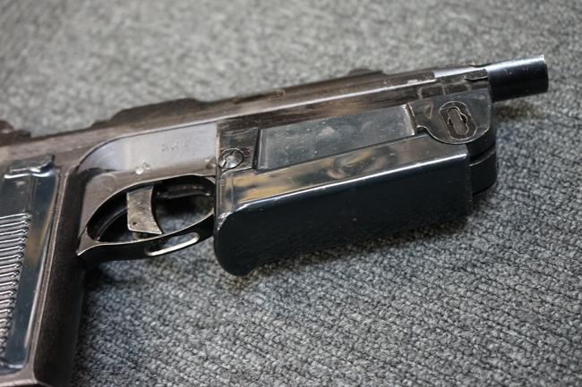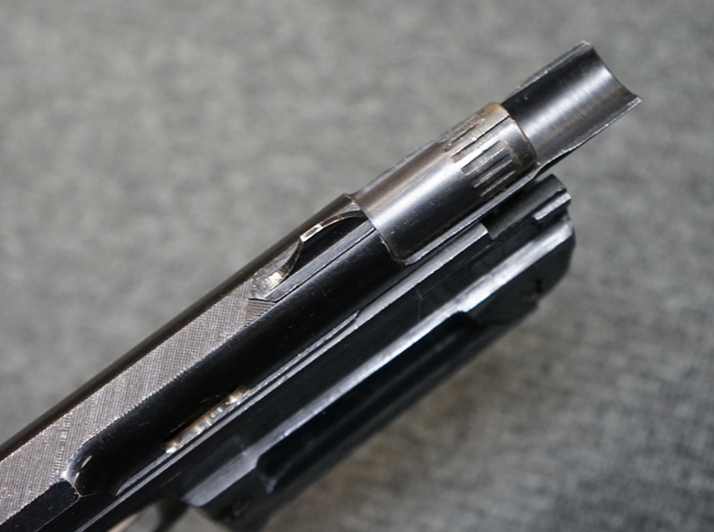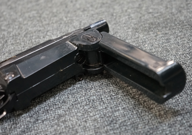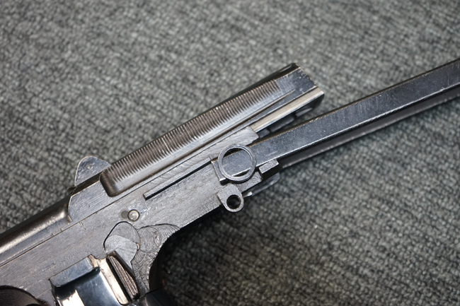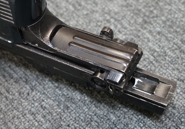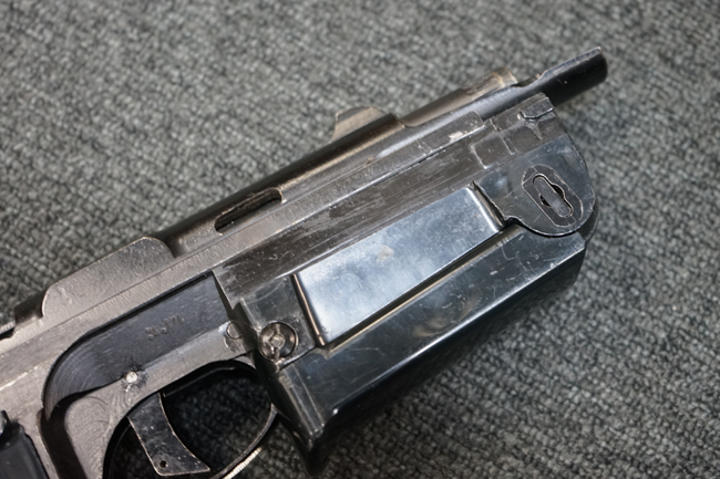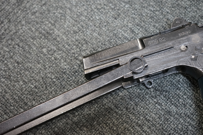 トリガーテンションのない、スライドが開いた状態で固定された新加工品です。 (KK)