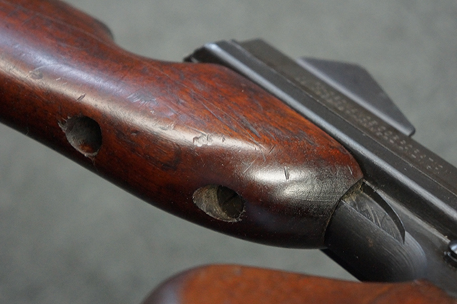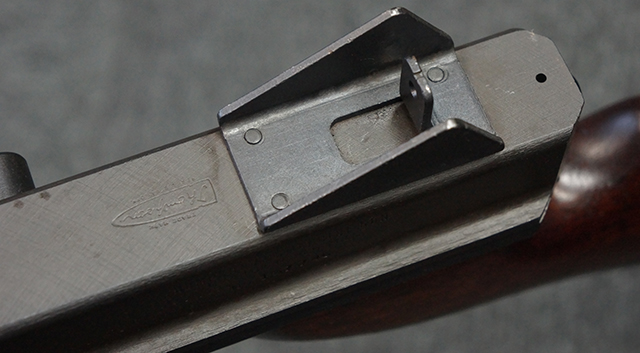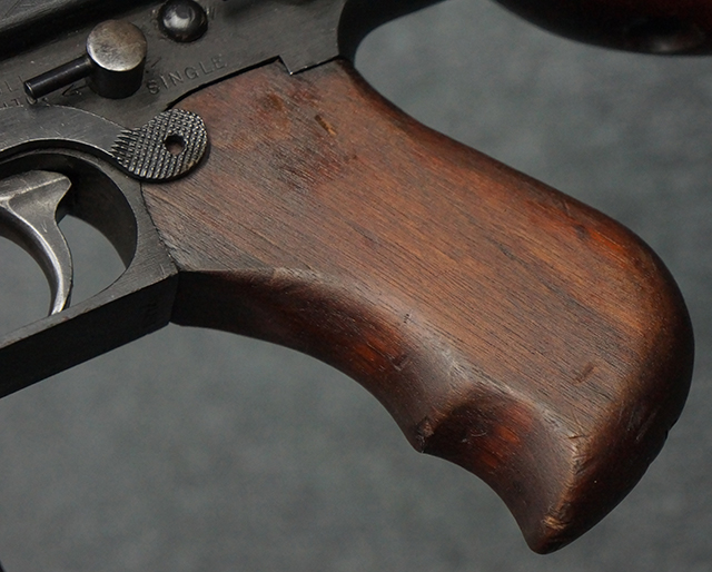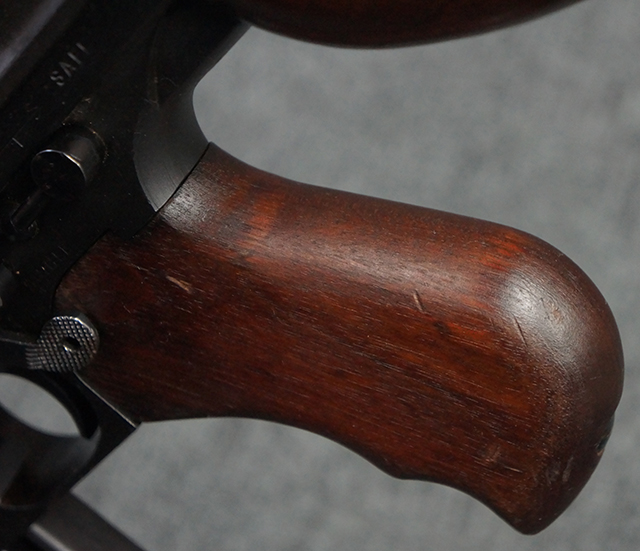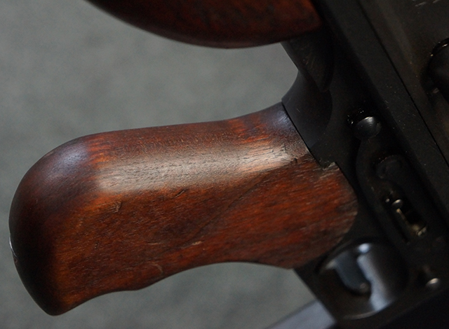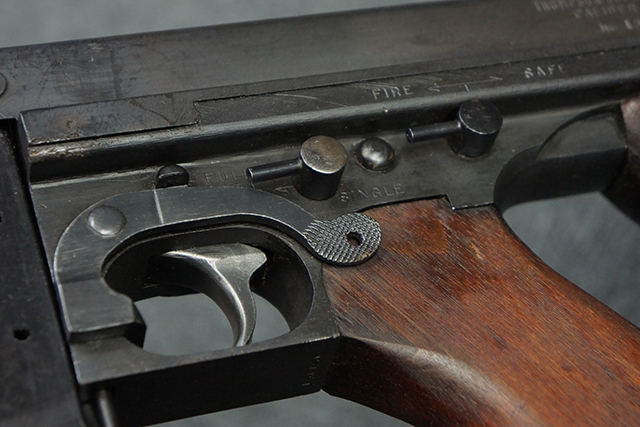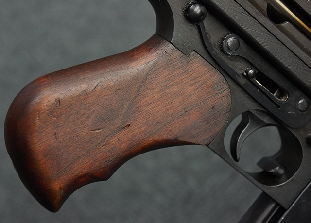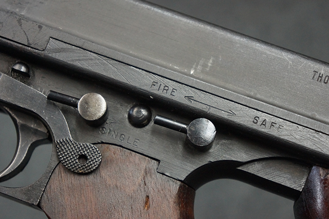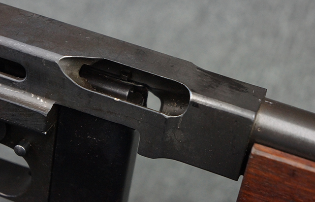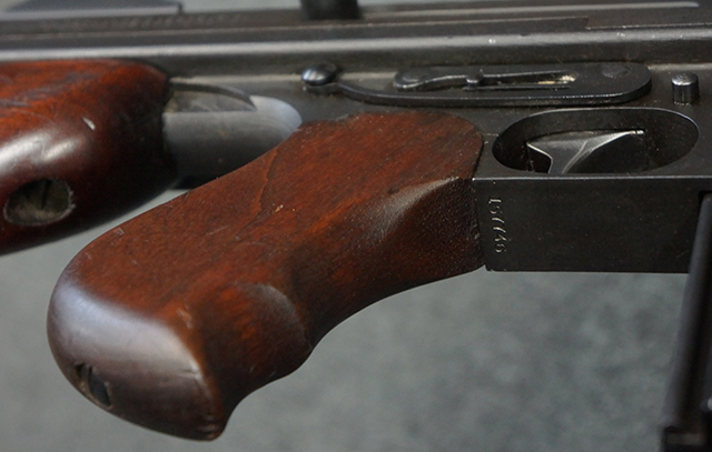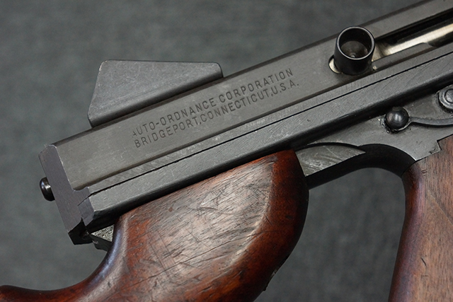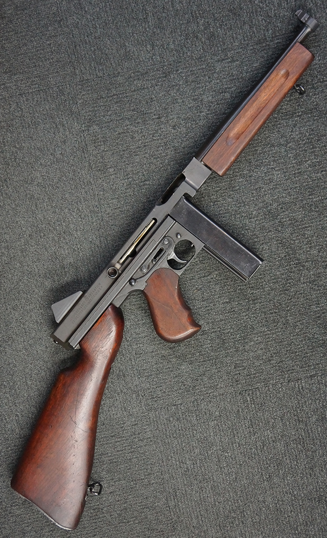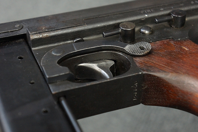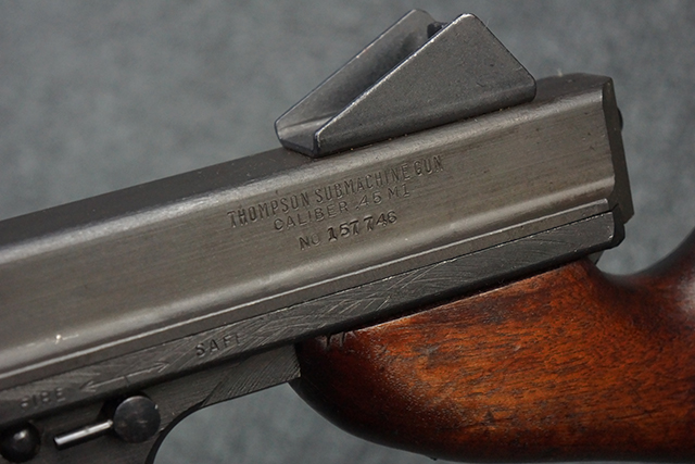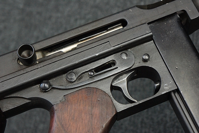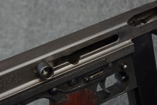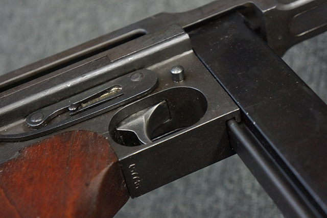 トンプソンM1928A1短機関銃の製造コストを下げるために各部を改良したトンプソンM1短機関銃に対して、さらに撃針の固定化等の追加改良を加えたモデルです。M1A1ではリア・サイトの変形を防止する為、三角形のリア・サイト・ガードが標準装備されるようになりました。また、元々はM1として製造された物の中にも、後にM1A1に準じた改修を受けてA1刻印を追加された個体も存在します。