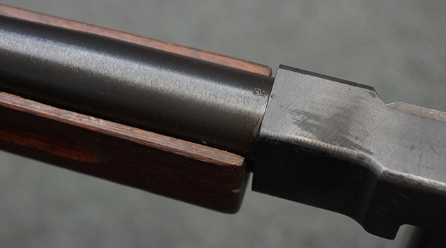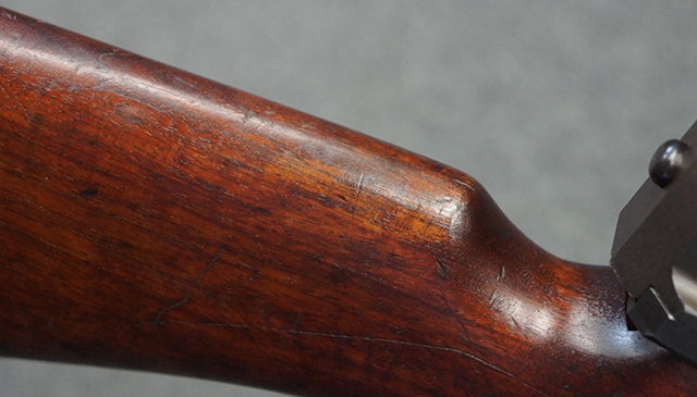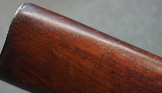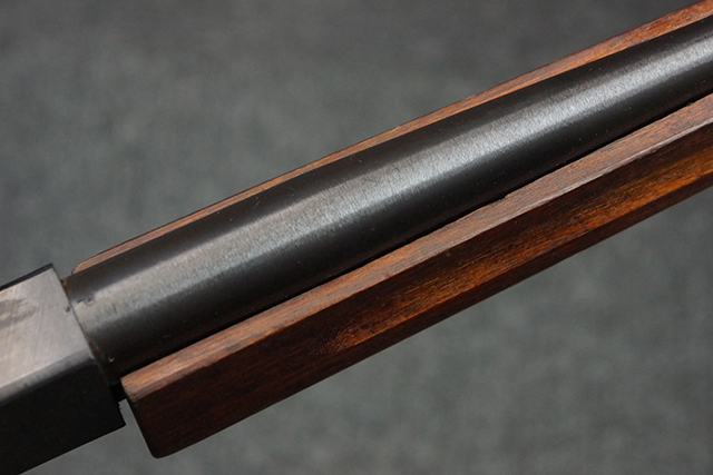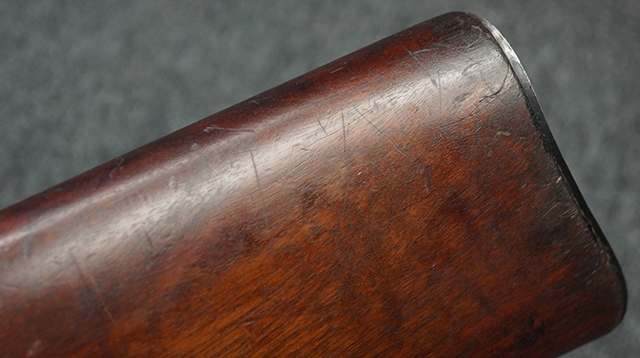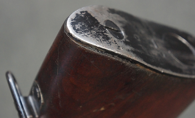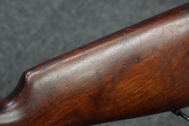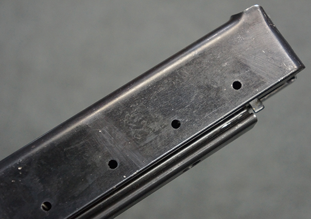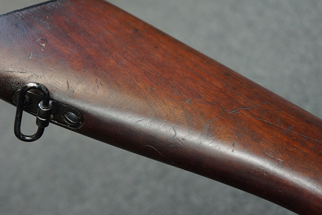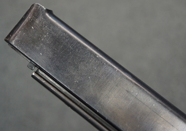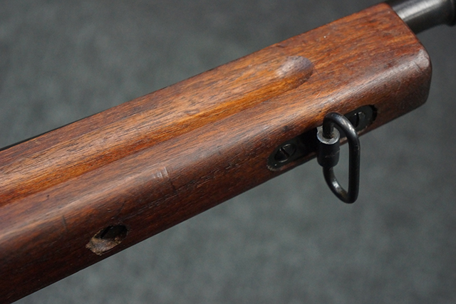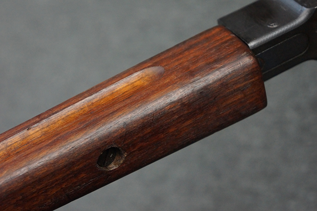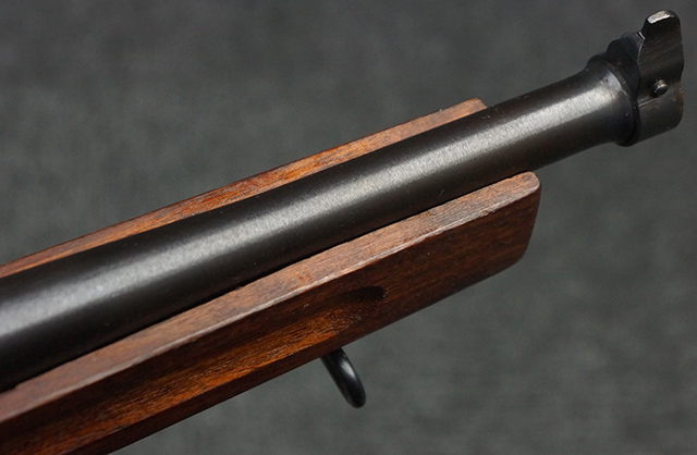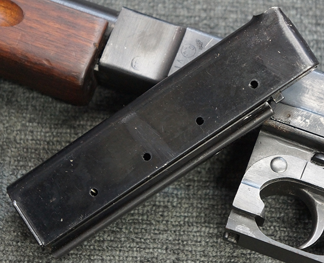 本品は全体に適度な使用感が見受けられ、金属部はやや小傷や擦れ、若干の経年による褪色が見受けられる他、マガジン取付部付近のレシーバー左側面に一部朽ち込み痕が見られるものの、大きな欠損等は見られず、オリジナルの仕上げも大部分に残っています。 ハンドガードやグリップ、バット・ストックといった木部については、バット・ストックにやや艶が有るものの各部の色合いは比較的マッチしており大きな違和感は感じられません。 木部はやや打ち傷や線傷の他、グリップ下部等に僅かな欠けが見られるものの、全体としては目立った割れや欠け等は見受けられず、比較的しっかりとした状態が保たれています。 ハンドガードの取り付けにやや遊びが見受けられます。 バット・プレートは黒色の塗装仕上げとなっており、仕上げが落ちて金属の地肌が表れている箇所が見られますが、大きな変形等は見られず、バット・ストックへの取り付けもがたつきもなくしっかりとしています。 ストック内コンパートメントの蓋の開閉については問題なく行う事が可能です。 セレクター及びセーフティ・レバーの切り替えは可能ですが、トリガーとの連動等は有りません。 付属のマガジンはAUTO ORDNANCE製の20連タイプで、前面にメーカー・アドレス刻印が入っています。 マガジンにはやや小傷や擦れが見られますが、目立った凹みや変形等は見られず、本体への着脱についても問題なく行う事が可能です。 尚、マガジン・スプリングは入っています。