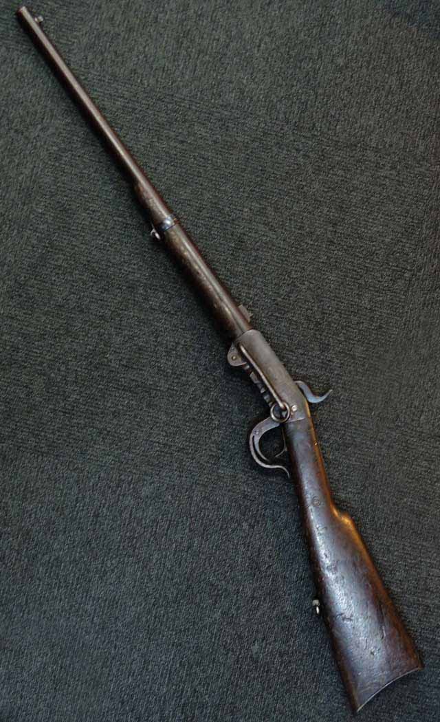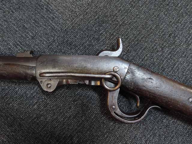 バーンサイド・カービンは細身の本体でありながら、単発のため大口径でガッチリとした内部構造を持つユニークな銃で、真鍮製カートリッジを使用し、後装銃特有の銃尾からの発射ガス漏れを軽減しているのが最大の特徴です。