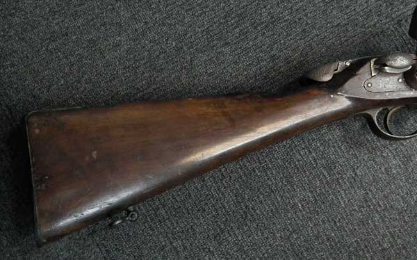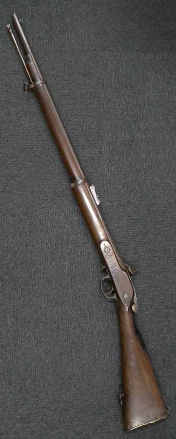 ウィルソン2 バンド ライフルはトーマス・ウィルソン(Thomas Wilson)が1860年10月12日にパテント No.2488(Thomas Wilsons British Patent No. 2488)を取った後装装置を使った後装施条銃です。 元になった銃は.577口径のエンフィールド小銃で、口径も同じで腔綫「ライフリング」は初期型と同じ5条となっています。 撃発装置もエンフィールド小銃と同じような、サイド・ロックの雷管外火式です。 後装式の構造を除けばエンフィールド小銃とほぼ同じスペックです。