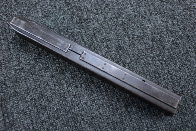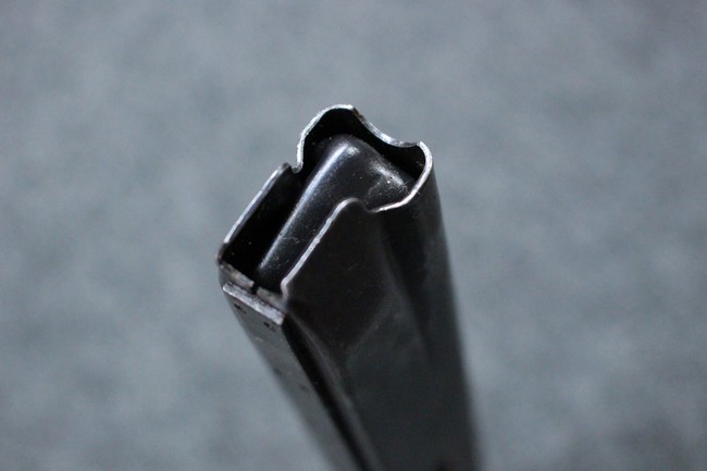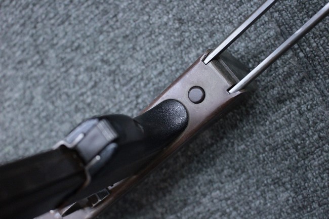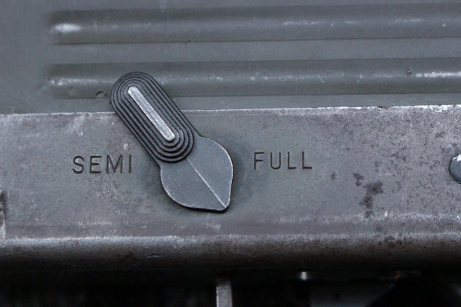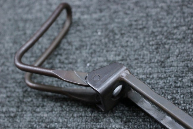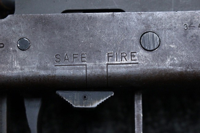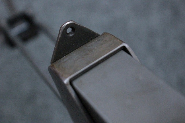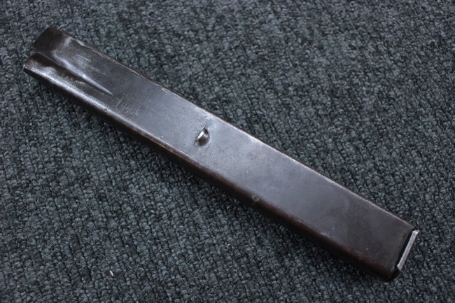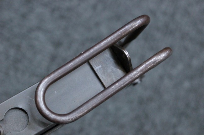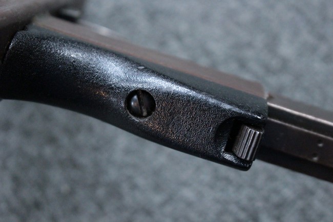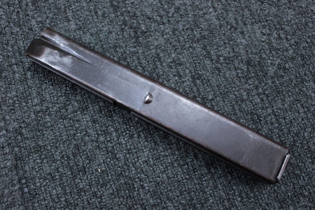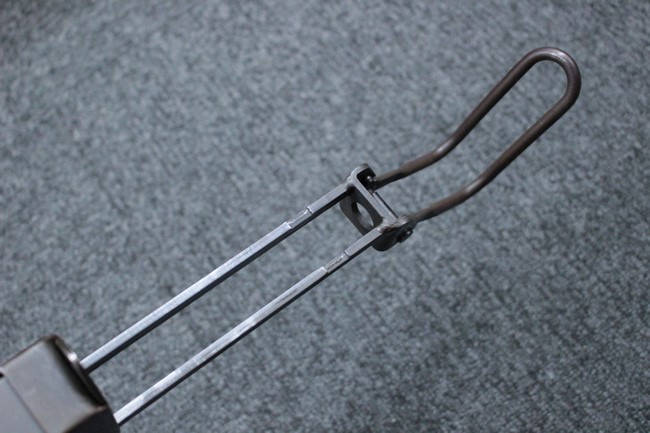 本品はアッパー・レシーバーは英国でMAC10/MAC11を生産していたS.F.Firearms社製で、ほぼ未使用のグレー・パーカー仕上げになっています。 若干の小傷はありますが仕上げがはっきりと残っており、充分に良い状態と言えます。 また銃身側に付いているハンド・ストラップ、及びその金具は付属しておりません。 これはS.F.Firearms社製であるためかと思われます。 一方ロア・レシーバーは軍で使用されたパーカー仕上げが使い込まれた感じになっています。 全体的に赤っぽく退色しており、小傷が散見されます。 それに伴う表面錆の跡も見受けられますが、朽ち込みには至っておらずあくまで表面的なものです。 伸縮式のワイヤー・ストックは小気味良く動作し、ロックもしっかりと掛かります。 セレクターは少々スプリングのテンションが甘くなっていますが、クリック感が残っています。 セーフティはトリガーとの連動は有りませんがはっきりとしたテンションが残っています。 本品にはアッパー・レシーバーとローアー・レシーバーを固定するピンはGew.3タイプの品で代用してあります。そのため僅かに前後に遊びがあります。