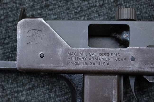 米国からのフルオートの輸出は法的に不可能ですがアッパーとローアー共にMILITARY ARMAMENT CORP社製であれば現地価格がUS$5,000~で、国内に輸入した場合は100万円近い価格になります。 ローアーはオリジナルの米国製、フルオートの品でMAC. M11, CAL 380 SMG, MILITARY ARMAMENT CORP, MARIETTA, GA, USAの刻印が入っています。 メーカーによって9mm AUTOの口径表示だったものが、削って.380と打ち直しているようです