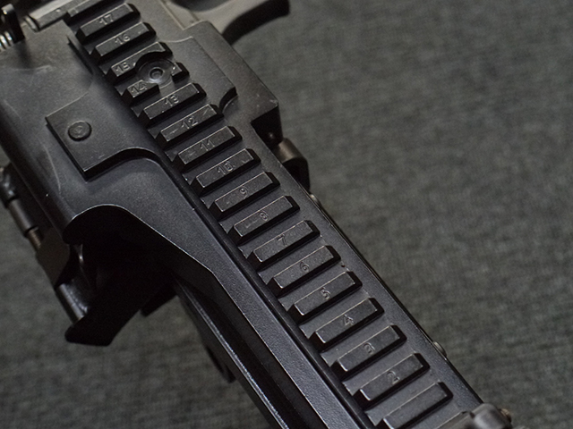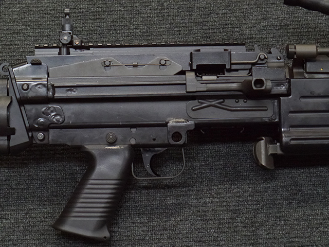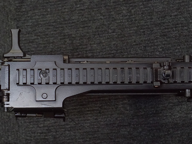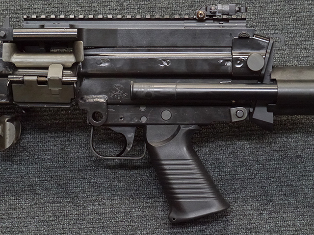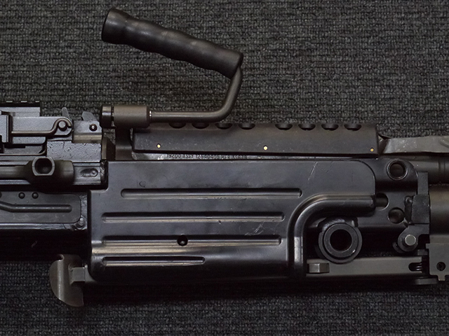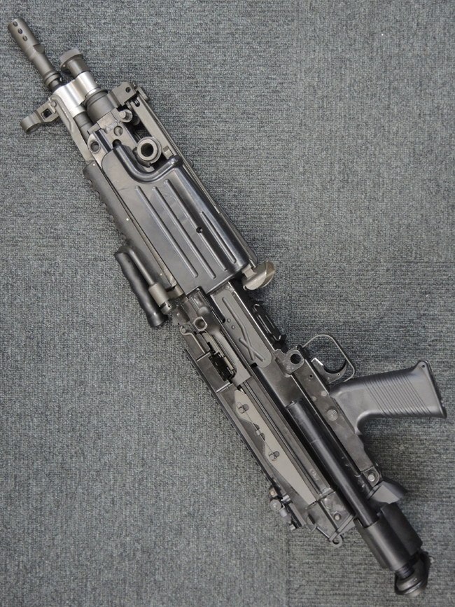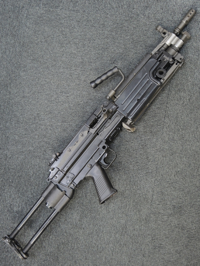 FN MINIMIは1982年に米軍でもM249の名称で採用され、イラクやアフガニスタン等での使用がメディアでも見られました。 その後わが国の自衛隊でも採用され、軽機関銃手による使用や軽装甲機動車などの車載機銃としても使用されています。 フィード・カバーの上にピカティニー・レールが装備されており、各種光学機器の装着が可能です。