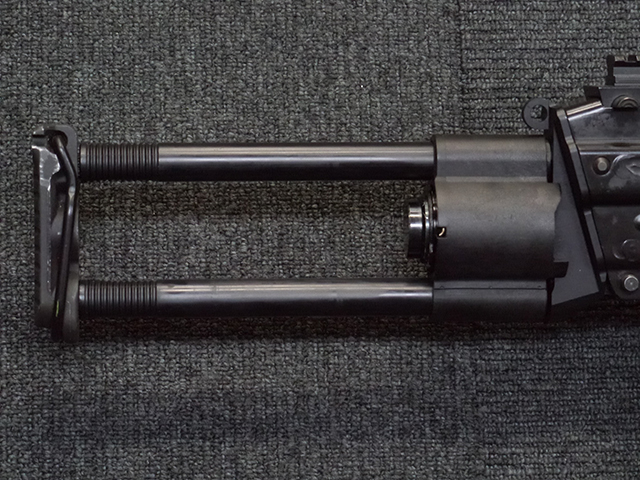 FN MINIMIには固定ストックのスタンダード・モデルの他、空挺部隊用のPARAモデルが存在します。 本品はショート・バレルと特徴的なの伸縮式バット・ストックを備えたPARAモデルです。