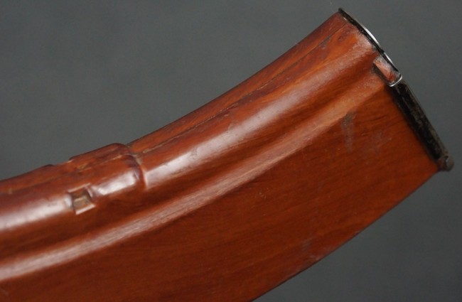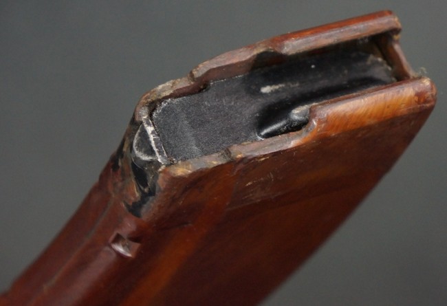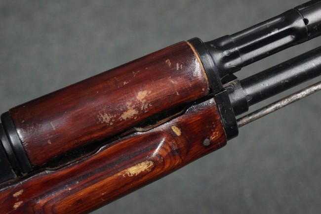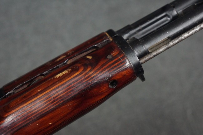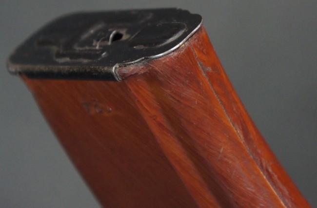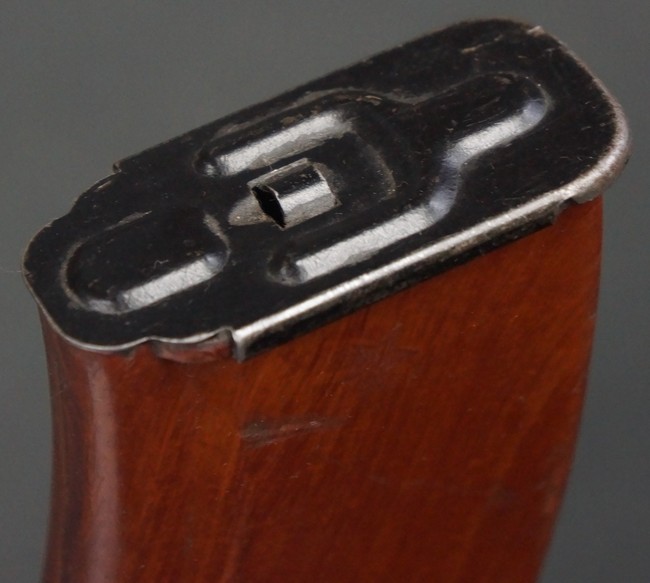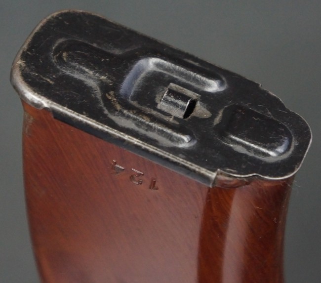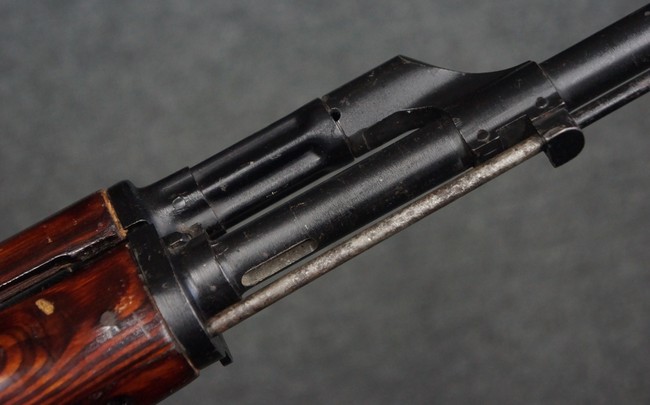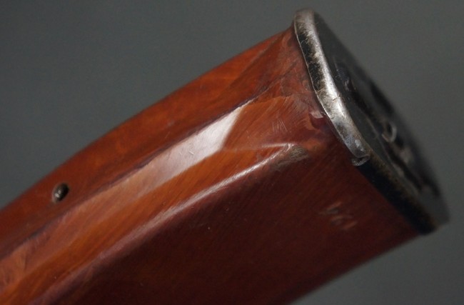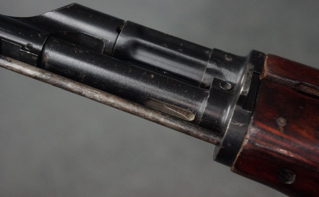 本品は全体に適度な使用感が見受けられ、銃身や機関部といった金属部は、やや打ち傷や擦れ、一部に若干の表面仕上げの剥落は見られるものの、目立った欠損等は見受けられず、黒色の焼付塗装仕上げも比較的良好に残っています。 ハンドガードやバット・ストックといった木部についても、やや打ち傷や擦れ、一部ニス仕上げの剥落が見られるものの、目立った破損等は見られず、各部の取り付けについても大きながたつき等は見られません。 樹脂製のグリップについては、若干の小傷は見られるものの、コンディションは比較的良好です。 マガジンの着脱やリア・サイトの調整については問題なく行う事が可能です。 付属のマガジンについてもやや使用感が見受けられ、打ち傷や擦れが見られますが、現状大きな破損等は見られず、概ねしっかりとした状態が保たれています。 尚、マガジン・スプリングは入っています。 クリーニング・ロッドが付属いたします。 尚、クリーニング・ロッドには仕上げの剥落や表面錆痕が見られます。