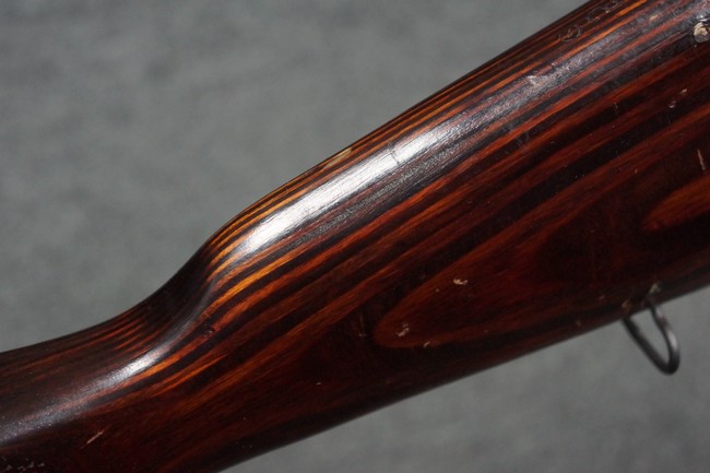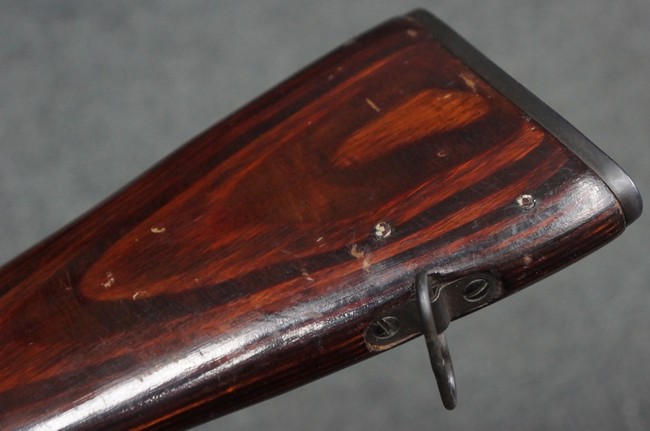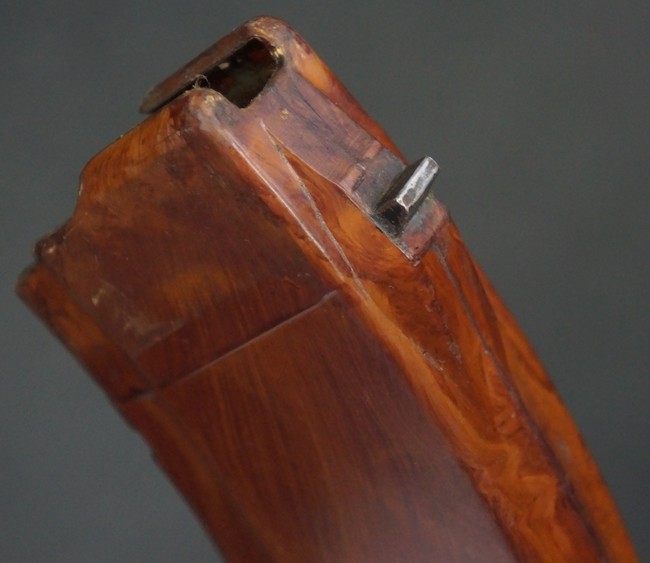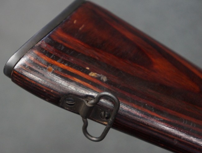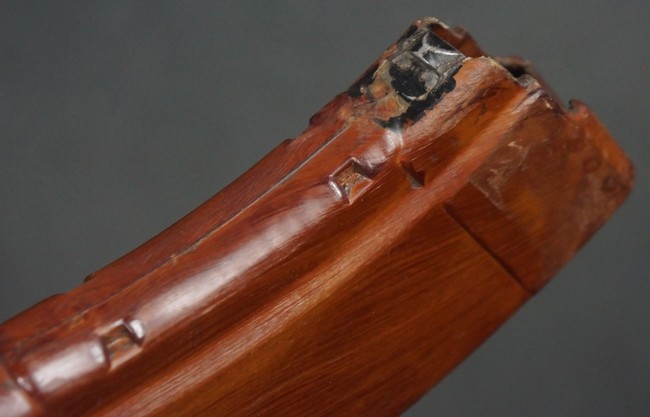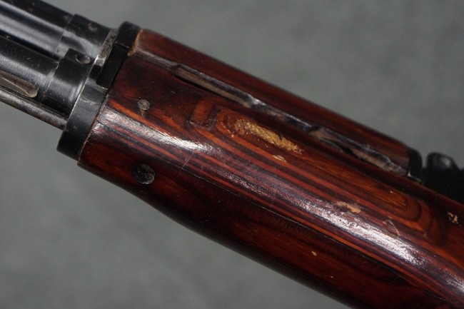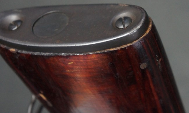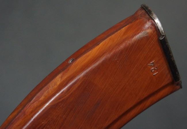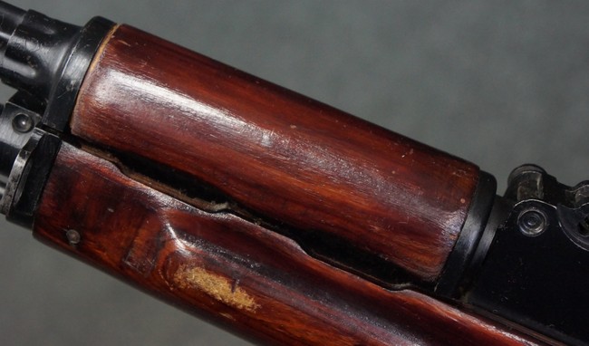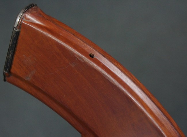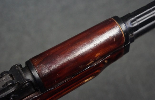 本品は全体に適度な使用感が見受けられ、銃身や機関部といった金属部は、やや打ち傷や擦れ、一部に若干の表面仕上げの剥落は見られるものの、目立った欠損等は見受けられず、黒色の焼付塗装仕上げも比較的良好に残っています。 ハンドガードやバット・ストックといった木部についても、やや打ち傷や擦れ、一部ニス仕上げの剥落が見られるものの、目立った破損等は見られず、各部の取り付けについても大きながたつき等は見られません。 樹脂製のグリップについては、若干の小傷は見られるものの、コンディションは比較的良好です。 マガジンの着脱やリア・サイトの調整については問題なく行う事が可能です。 付属のマガジンについてもやや使用感が見受けられ、打ち傷や擦れが見られますが、現状大きな破損等は見られず、概ねしっかりとした状態が保たれています。 尚、マガジン・スプリングは入っています。 クリーニング・ロッドが付属いたします。 尚、クリーニング・ロッドには仕上げの剥落や表面錆痕が見られます。