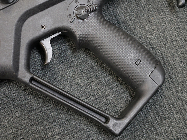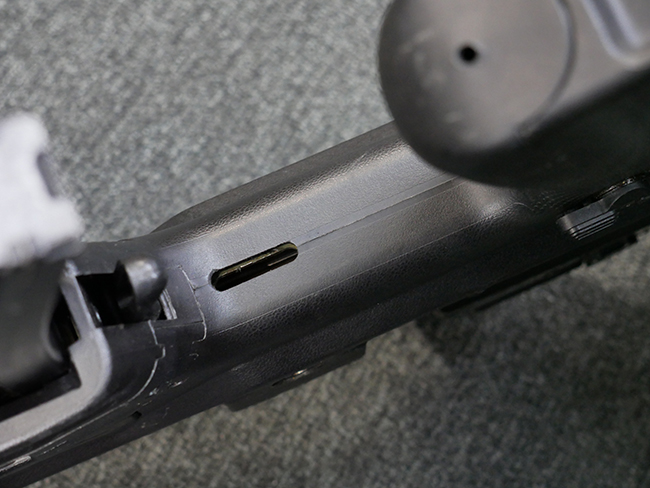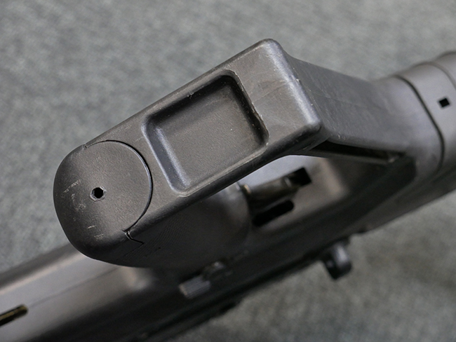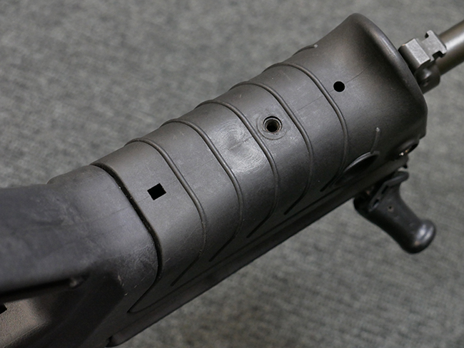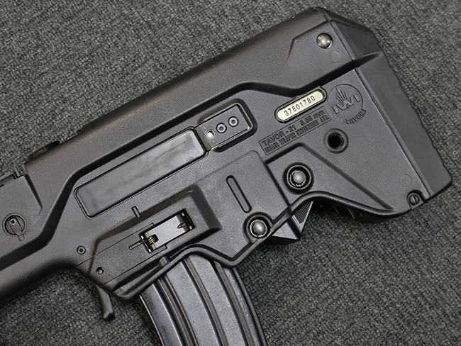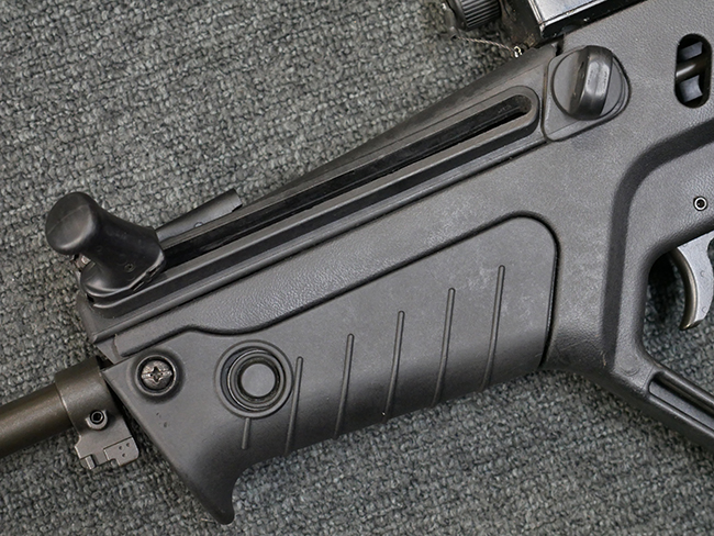 タボールの様なブルパップ方式の銃は、基本的に排莢システムを左右変更出来るようになっておりますが、内部のボルトの関係で右利き仕様の状態になっております。