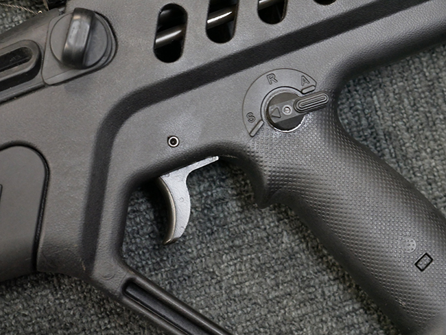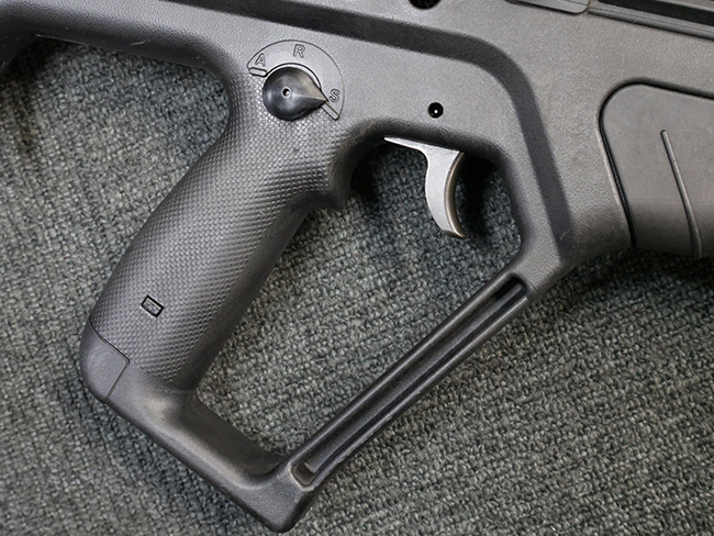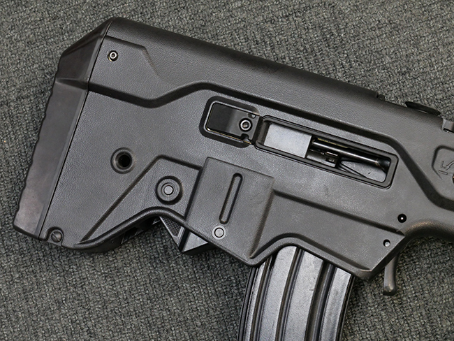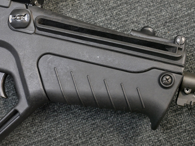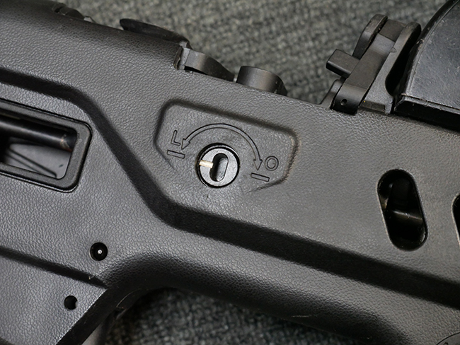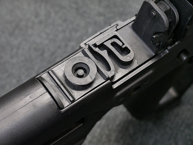 また、AUGなどと同様にボルトなどの部品を右利き・左利きそれぞれの専用パーツに替える事により、排莢方向を左右に変更可能です。
