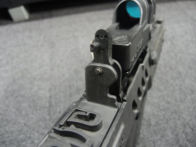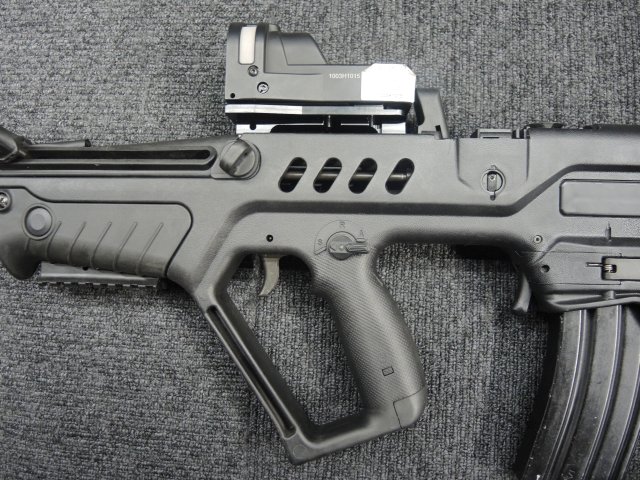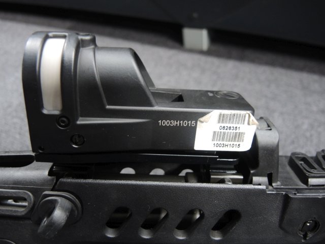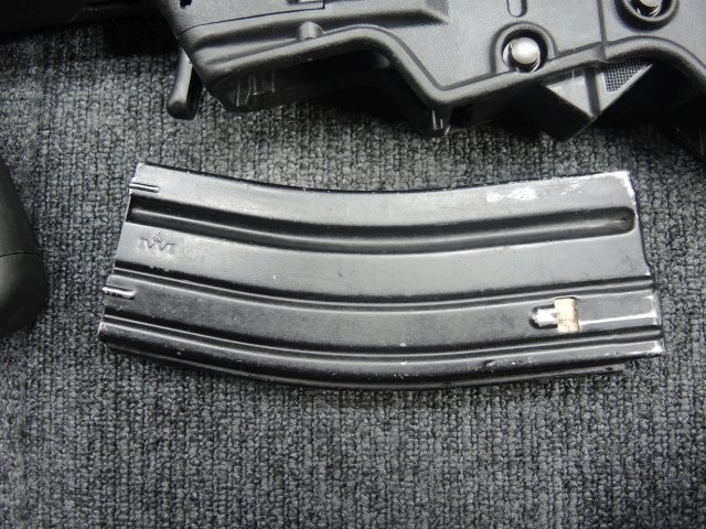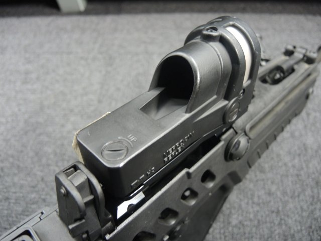 マガジンはM16系のSTANAGタイプの物が装着でき、IWI純正の鉄製30連マガジンが付属します。 フォア・グリップ下面にアクセサリー・レイルが装備されています。 タボールの純正装備品でもあるMepro社製のリフレックス・サイトも付属しております。 こちらは外見上は大きな欠損はなくコンディションも良い状態ですが、サイト本来の機能は保障しておりません。