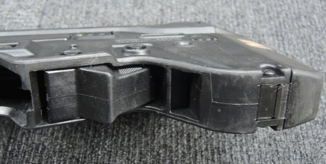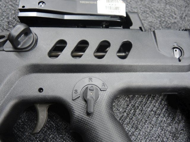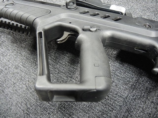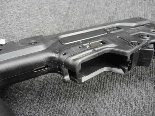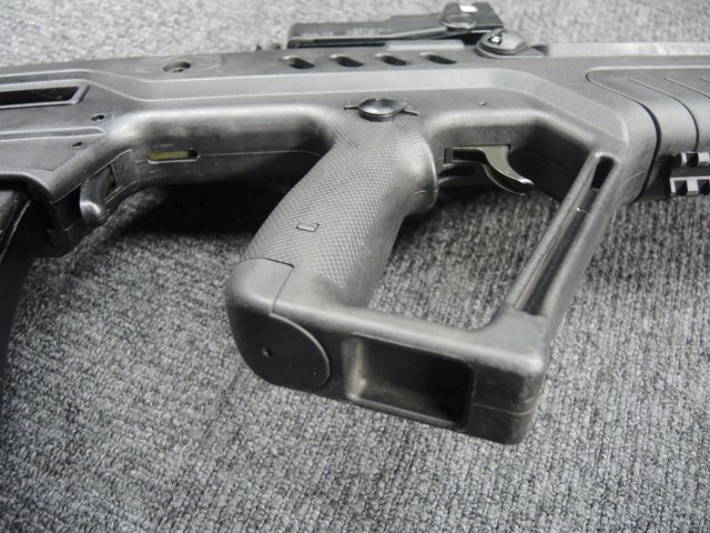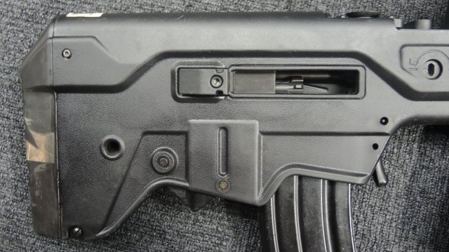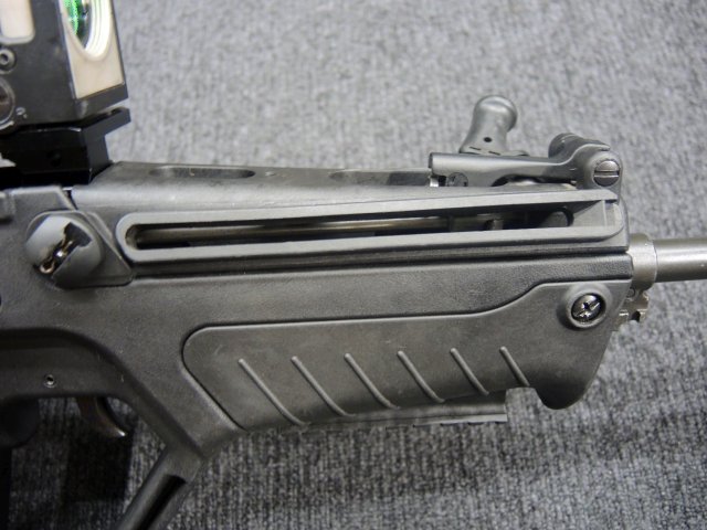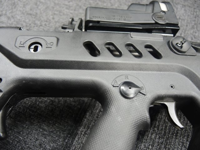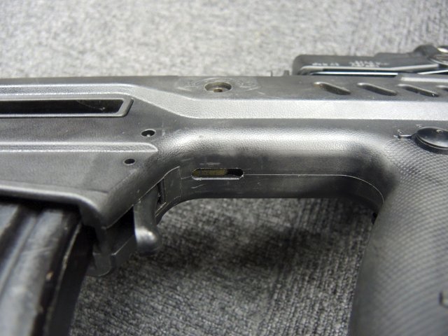 タボールの様なブルパップ方式の銃は、基本的に排莢システムを左右変更出来るようになっておりますが、内部のボルトの関係で右利き仕様の状態になっております。