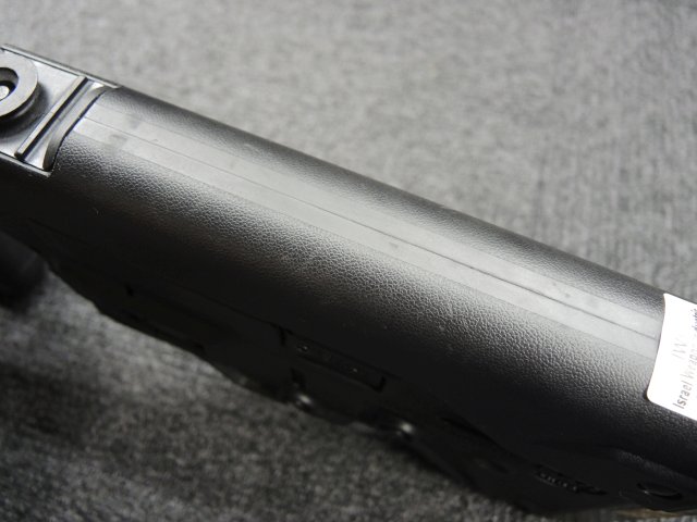 本品はシリアル#.38830168の個体で、イスラエル軍の放出品を直接弊社が入手した品です。 放出品ではありますが、元来傷の付きにくい強化樹脂を使用している為、フレームの樹脂部は若干の擦り傷等が見られますが、外観を損なうような大きく目立つ傷は見られません。 金属部に関しましても、トリガーなど頻繁に使用する角張った部分のごく小さな傷が見受けられる程度で、放出品とは思えない程の非常に良いコンディションを保っています。