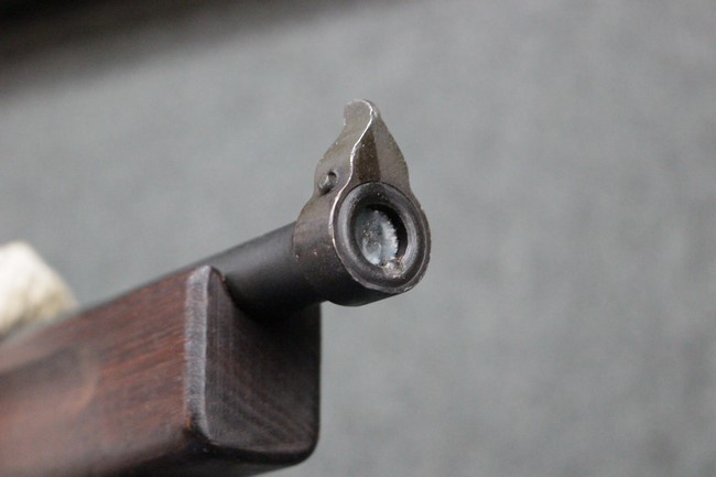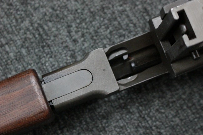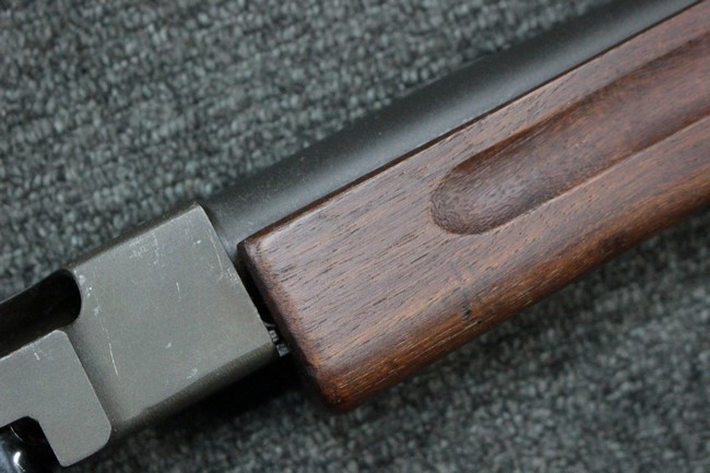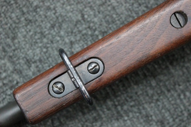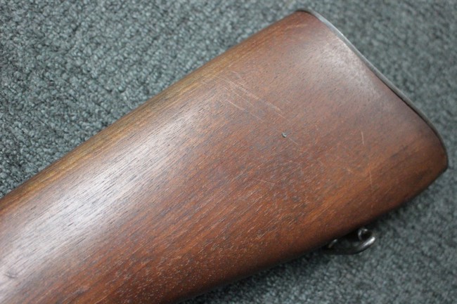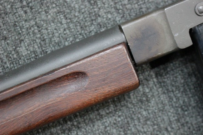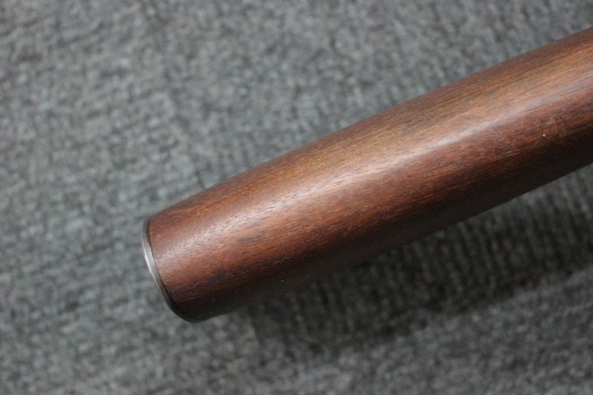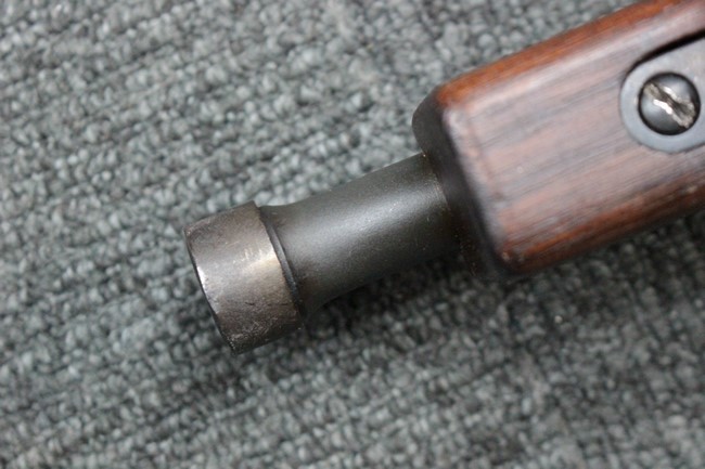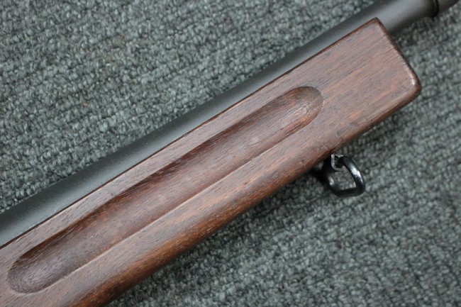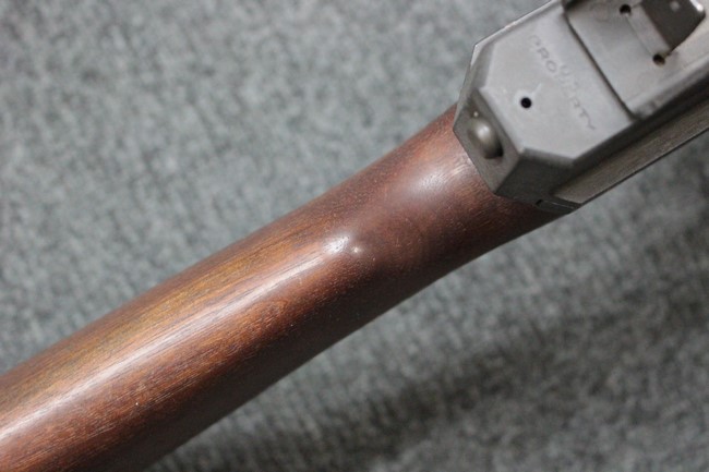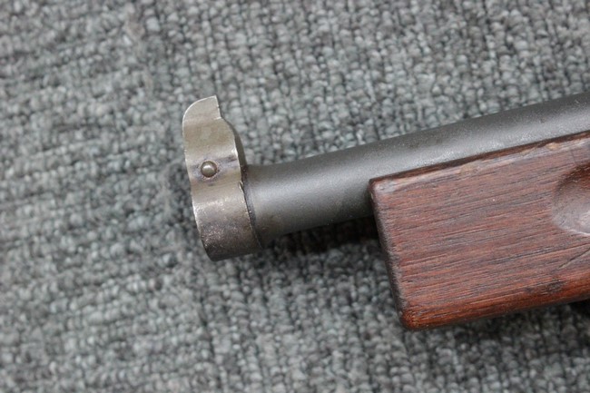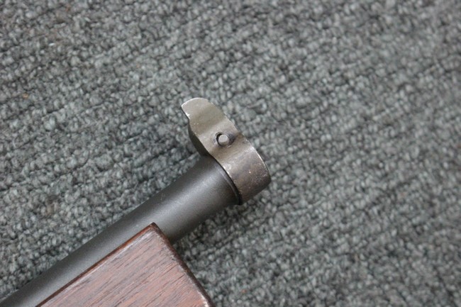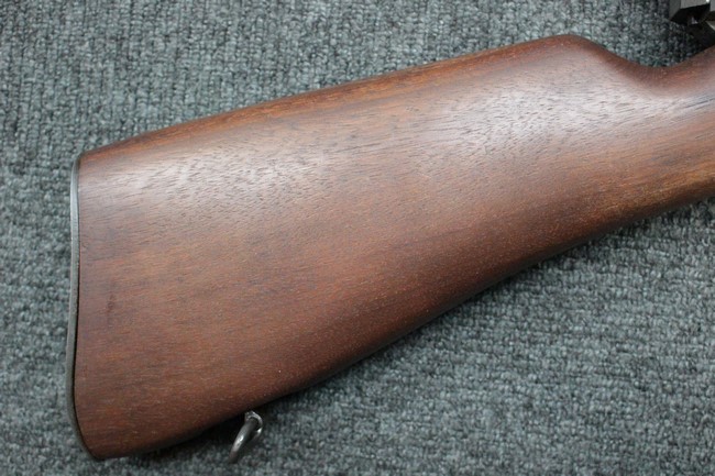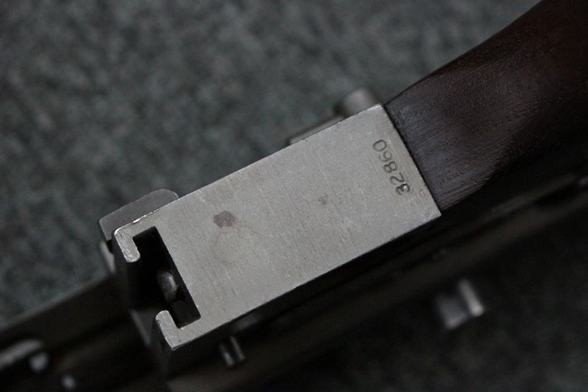 本品の銃身や機関部といった金属部は、やや小傷や擦れ等が見受けられるものの、目立った欠損等は見られず、オリジナルのパーカー仕上げも比較的良好に残っています。 ハンドガードやグリップ、バット・ストックといった木部については、やや打ち傷や線傷が見られる他、グリップ下部の角に一部欠けやストック下部のスイベル付近に約2cm程のヘアライン・クラックが見られますが、それ以外には大きな破損等は見られず、各部の取り付けについてもがたつきもなくしっかりとしています。 木部の色味については、グリップとハンドガードに比べて、バット・ストックが僅かに明るいものの、大きな違和感は感じられません。 傷み易いバット・プレートについても、若干の打ち傷や擦れを除いて目立った変形等は見られず、ストック内コンパートメントの蓋の開閉についても問題なく行う事が可能です。 付属のマガジンは20連タイプで、Seymour社のメーカー刻印が入っています。 マガジンはやや小傷や擦れ、若干の表面錆は見られるものの、目立った凹みや変形等は見られず、概ねしっかりとした状態が保たれています。 尚、マガジン・スプリングは入っています。 マガジンの着脱については問題なく行う事が可能です。 セレクター・レバー及びセーフティ・レバーの切り替えについても可能ですが、トリガーとの連動は有りません。