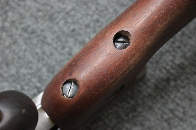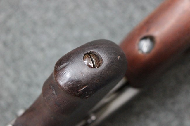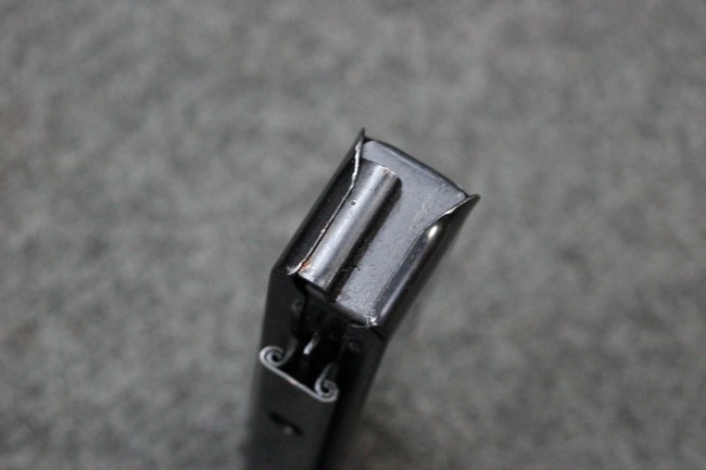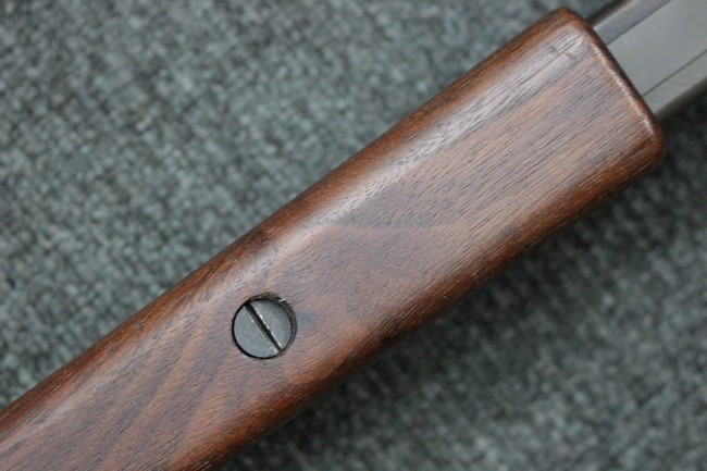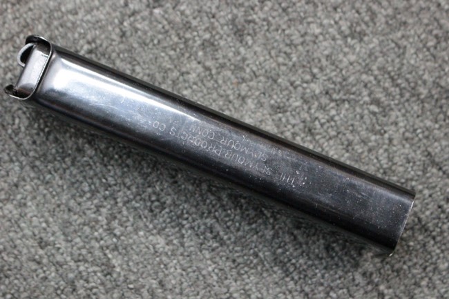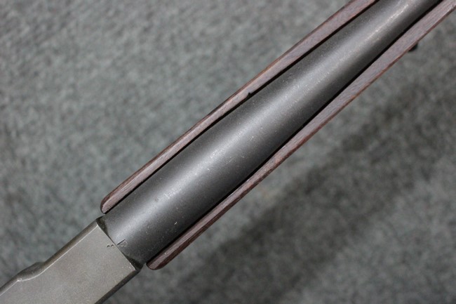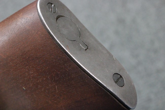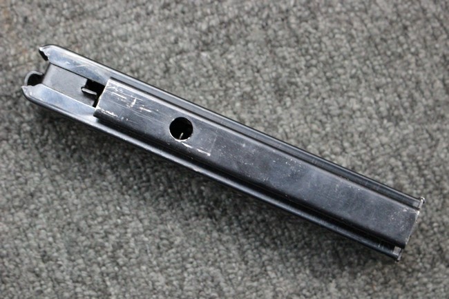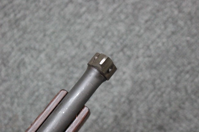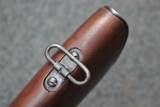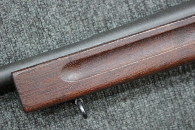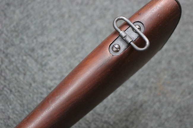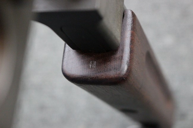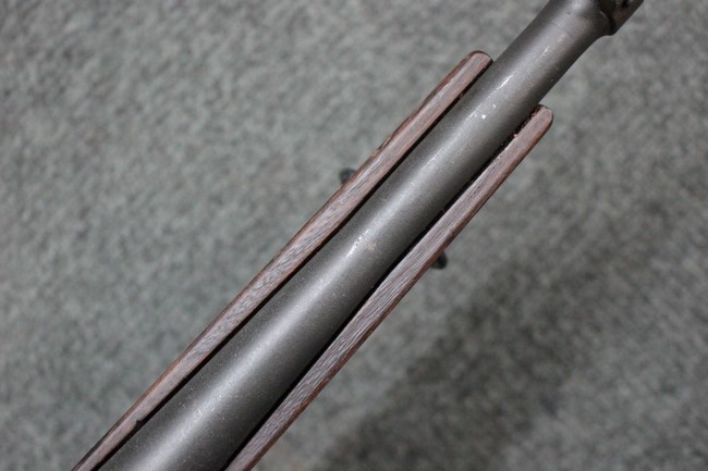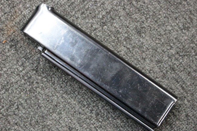 本品の銃身や機関部といった金属部は、やや小傷や擦れ等が見受けられるものの、目立った欠損等は見られず、オリジナルのパーカー仕上げも比較的良好に残っています。 ハンドガードやグリップ、バット・ストックといった木部については、やや打ち傷や線傷が見られる他、グリップ下部の角に一部欠けやストック下部のスイベル付近に約2cm程のヘアライン・クラックが見られますが、それ以外には大きな破損等は見られず、各部の取り付けについてもがたつきもなくしっかりとしています。 木部の色味については、グリップとハンドガードに比べて、バット・ストックが僅かに明るいものの、大きな違和感は感じられません。 傷み易いバット・プレートについても、若干の打ち傷や擦れを除いて目立った変形等は見られず、ストック内コンパートメントの蓋の開閉についても問題なく行う事が可能です。 付属のマガジンは20連タイプで、Seymour社のメーカー刻印が入っています。 マガジンはやや小傷や擦れ、若干の表面錆は見られるものの、目立った凹みや変形等は見られず、概ねしっかりとした状態が保たれています。 尚、マガジン・スプリングは入っています。 マガジンの着脱については問題なく行う事が可能です。 セレクター・レバー及びセーフティ・レバーの切り替えについても可能ですが、トリガーとの連動は有りません。