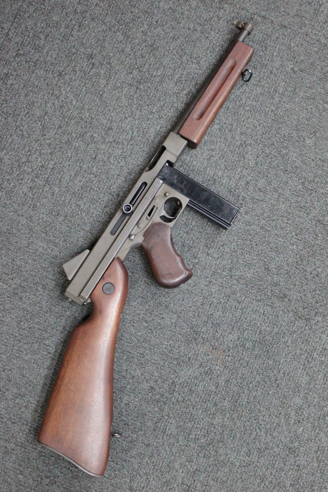 トンプソン短機関銃は元々サブ・マシンガンというジャンルが生まれる前の「個人が携行可能で機関銃のように連射できる武器」というコンセプトから開発が始まりましたが、新たなコンセプトの兵器ゆえ、当初の軍などの評価は決して芳しいものではありませんでした。 そんなトンプソンの最初の有効性を証明したのは軍ではなく、禁酒法時代の景気の良いギャングたちであり(この時はM1921とM1927モデルが主であったようです)、このためオート・オードナンス社とトンプソン・サブ・マシンガンは一時社会的イメージを落とし、この時期にオート・オードナンス社は経営の最大の危機を迎えたほどです。 ところが皮肉にもギャングたちの使用によりトンプソンの有効性は証明され、連邦捜査局 (FBI) や各地方の治安当局でも、こうした犯罪者に対抗するべくトンプソンM1928短機関銃が採用されました。 それと同じモデルがイギリスでは「トミーガン」の名称でコマンドの象徴と言われました。その後米軍でもニカラグアでの使用で実戦での実績も作り、ついに第二次世界大戦の幕開けと共にトンプソン短機関銃は本格的に各国軍に採用されるようになります。