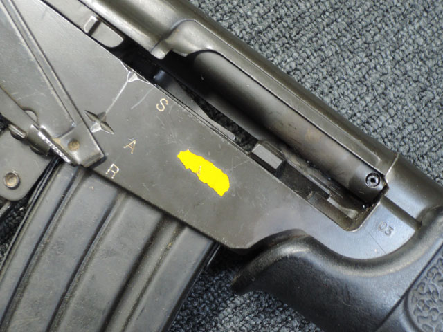 多少の使用感があり、焼付塗装のレシーバーには小傷、擦りキズ、スレ剥げなどはありますが、塗装自体はしっかりと残っています。 ハンド・ガードなどの樹脂部も同様に小傷こそ見られますが特筆すべき大きな破損等は見られない、使用された無可動実銃としては充分良い状態です。
