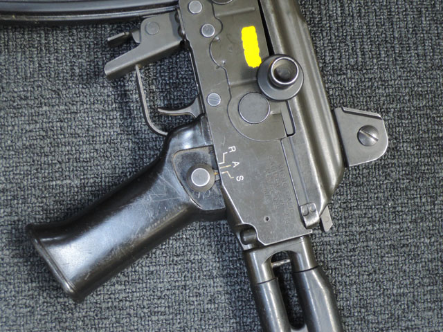 セレクターの表記文字は英語。 独特のピストルグリップ上にある、メインのセレクターに連動したセレクターも健在で、実際にその部分は可動も可能です(無可動加工の関係でセイフティ・ポジション最上部には入りません)。