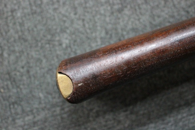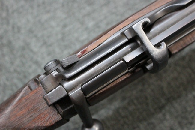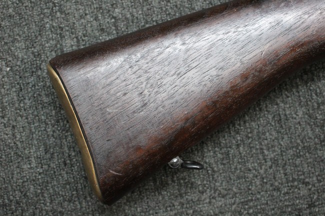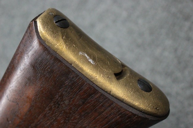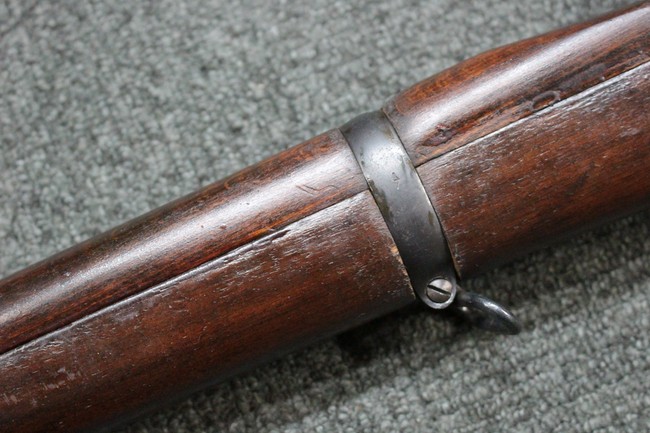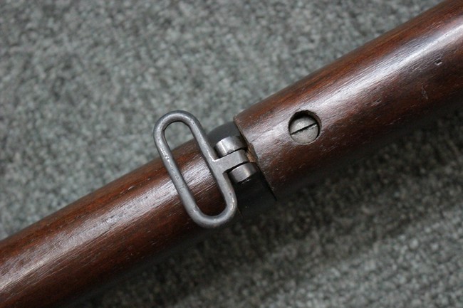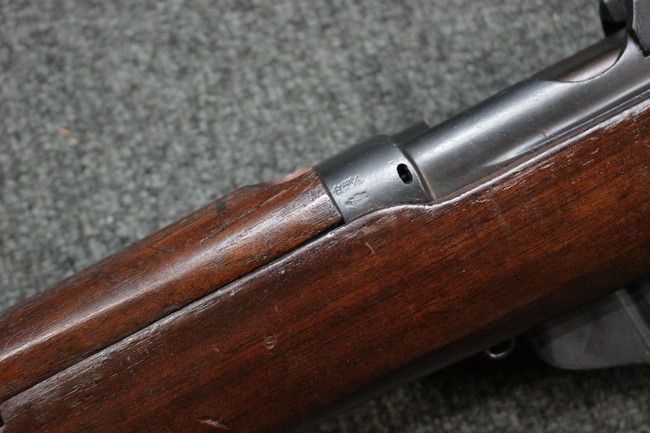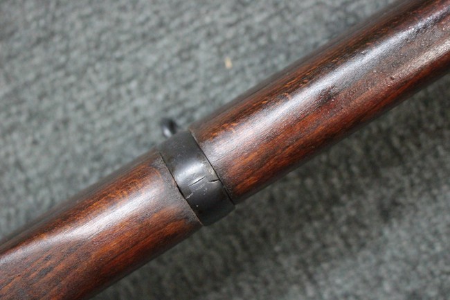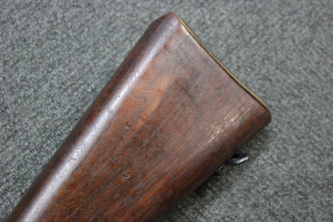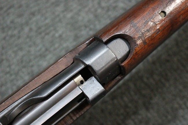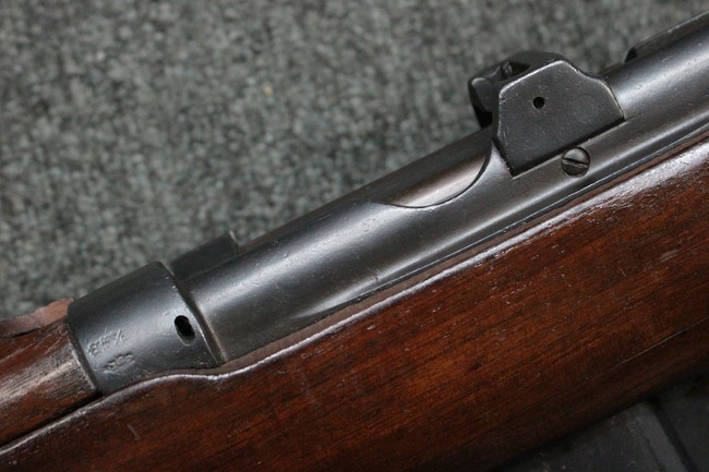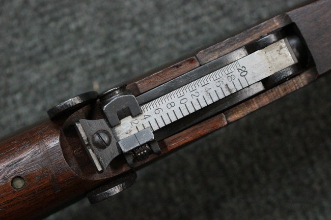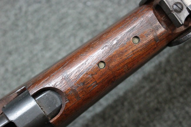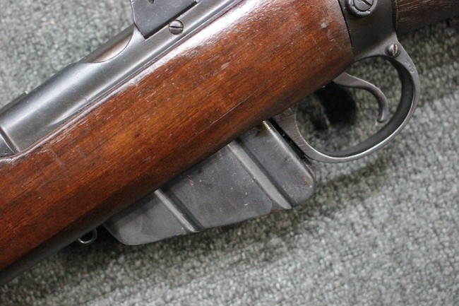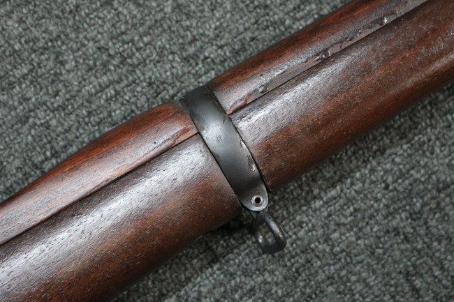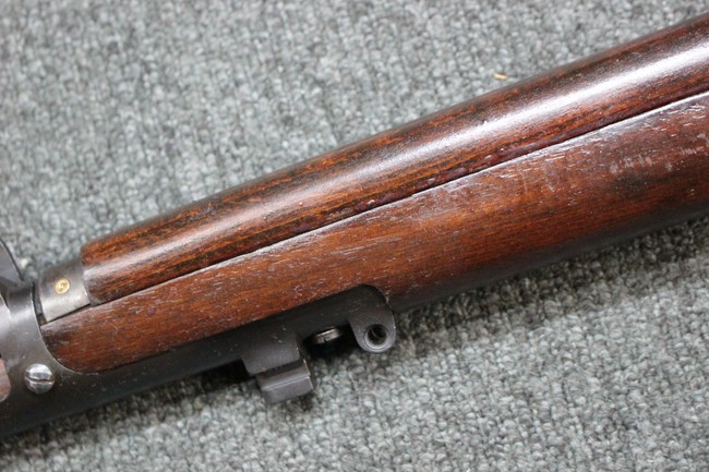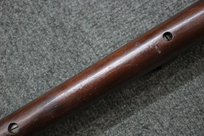 金属部は全体にやや打ち傷や経年による褪色、若干の表面錆痕が見受けられますが、全体としては大きな欠損等は見受けられず、概ねしっかりとした状態が保たれています。 また、金属部は焼き付け塗装となっています。 木部の色味については、アッパー・ハンド・ガードのみ複製品で、仕上げに若干の差がありますが、ストックの色味にかなり近い為、違和感はありません。 木部は若干の打ち傷や線傷を除いて大きな欠損などは見受けられません。 ストックの取り付けに極僅かながたつきは見受けられますが、十分許容範囲です。 リア・ハンドガード上面に正規の補修痕が見られるものの、強度的にしっかりした状態が保たれており、ハンド・ガードの取り付けにガタつきも見られません。 バット・プレートは真鍮製で、細かな打ち傷が散見されるものの、大きな腐食や変形などは見られず、ストック内コンパートメントの蓋の開閉についても問題なく行う事が可能です。 リア・サイトの調整やマガジンの着脱については問題なく行う事が可能です。セーフティの操作は数cmほど下げられますが、完全に下げることは出来ません。 マガジンについては底面の仕上げが落ちて地の金属色が現れていますが、大きな腐食や変形は見られません。 尚、マガジン内にフォロアーとスプリングは入っています。