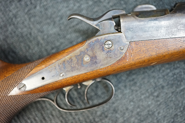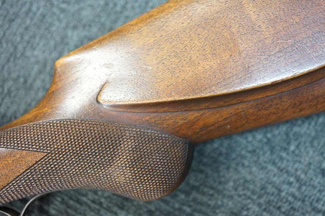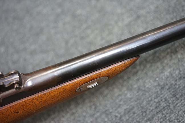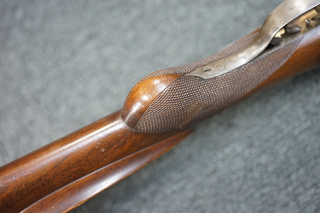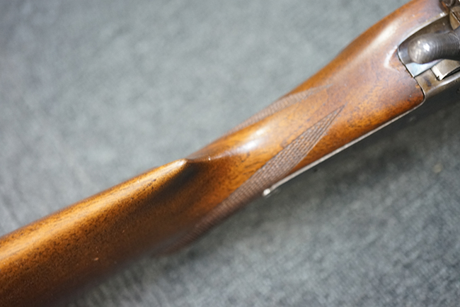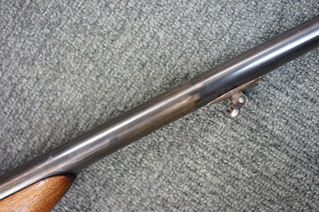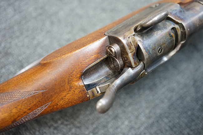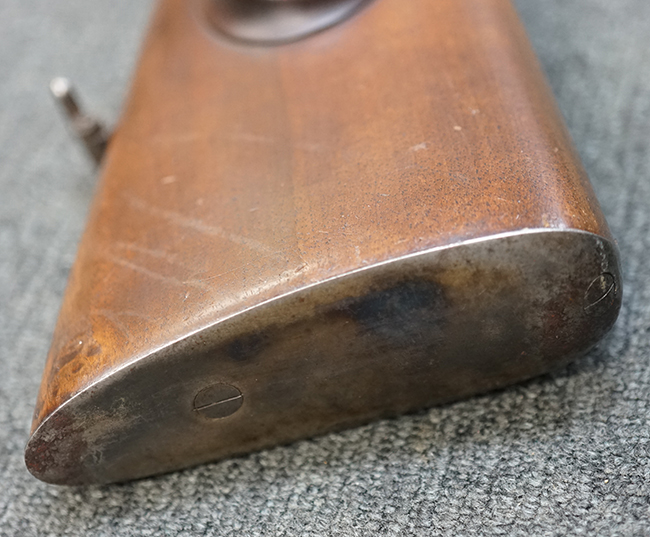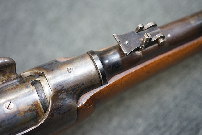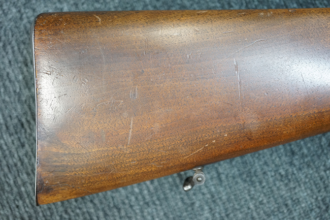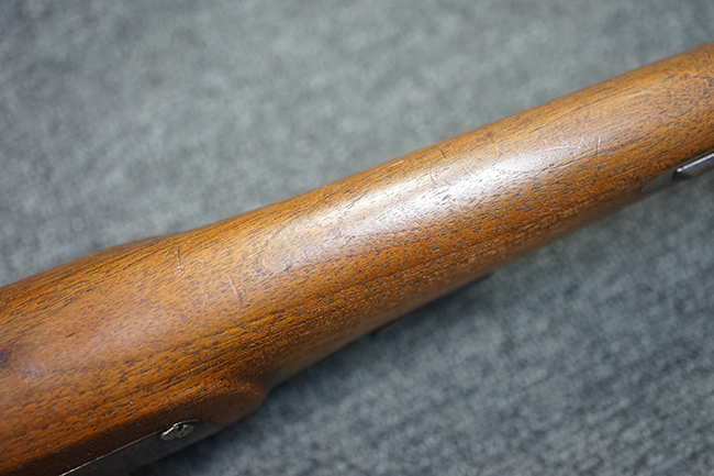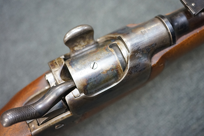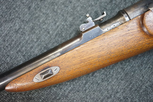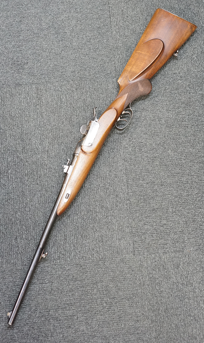 本品は1877年にオーストリア軍制式小銃となったM1877の騎兵銃モデルをベースにセット・トリガーを追加し狩猟用に改造された品です。ストックも高級な素材を使ったピストル・グリップ&ハーフ・ストックとなっています。 リア・サイトも精密射撃に向いた微調整が出来るものです。 オーストリアでは同じステアー製のライフルでもマンリッヒャー ライフルを狩猟用に改造された品は時々見かけますが、ヴェルンドルをカスタマイズした品は弊社でもこの一丁しか見た事がありません。