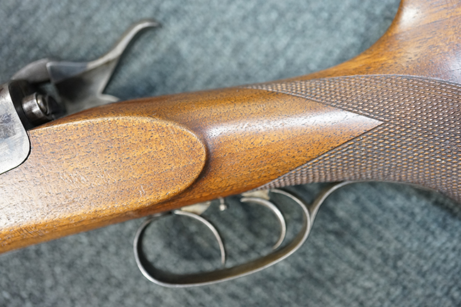 20世紀に入ってからカスタマイズされたと思われる非常に繊細な作りになっています。 前述したように機関部の構造はそのままですが、ストック、セット・トリガー、前後サイトを新しく精密射撃用に改造してあり、その仕上げの良さと程度の良さは弊社の折り紙付です。 リバレルされた銃身のブルーイングがほぼ完全に残っています。 木部のごく僅かな当たり傷と銃身下部の一部変色を除けば極美品です。 ピストル・グリップ部分には緻密なチェッカーリングが入っています。 約140年前の古式銃とは思えない素晴らしい状態です。 セット・トリガーの機能とトリガー・テンションがありますが、ハンマーとは連動していません。 ハンマーにはスプリング・テンションはありませんが前後に動きます。 国内では登録証交付の対象外となるため無可動実銃とでしか所持はできませんが、無可動であるが故にお値打ち価格になっています。 19世紀のオーストリア軍を語る上で欠かせないモデルで、ヴェルンドルのバリエーションとして貴重な一挺です。